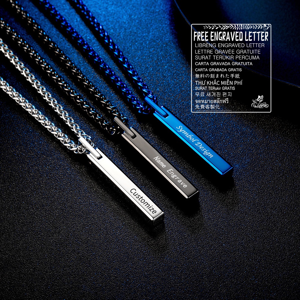 Customize Name Engrave Necklace Men's Tungsten Steel Pendant Hip-hop Light Luxury Personalize Jewelry