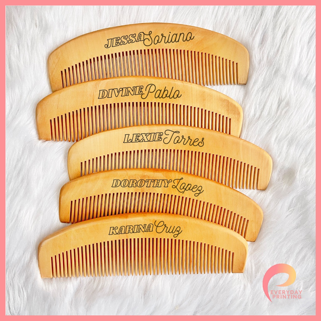 Customize Wooden Comb - MOON / CURVE COMB (Wedding, Baptism, Gift Souvenir / Giveaway)