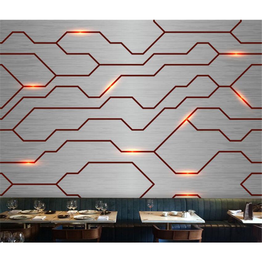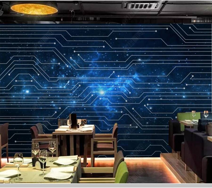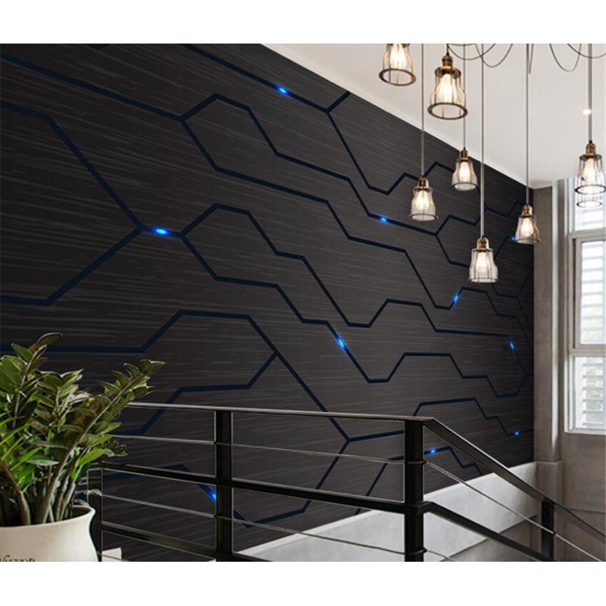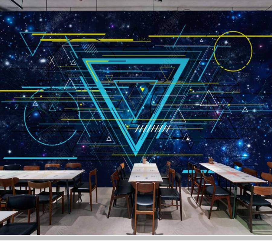 Customized 3D three-dimensional abstract lines geometric squares triangles neon starry sky circuit board technology bar KTV office gaming wallpaper mural