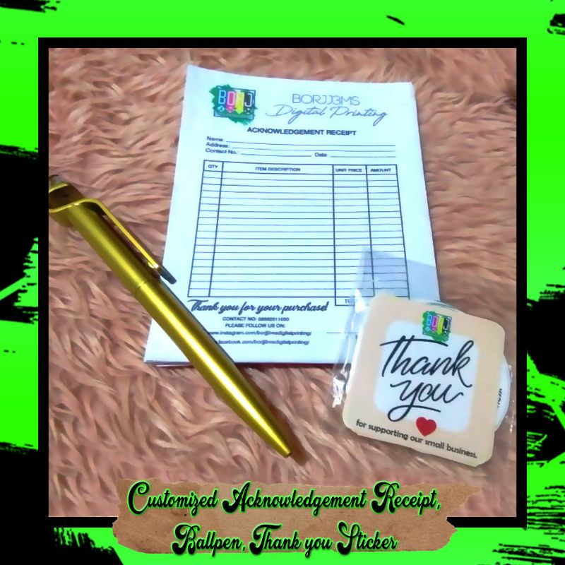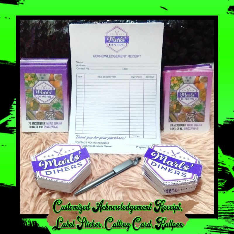 Customized Acknowledgement Receipt | Label Sticker | Calling Card | Ballpen