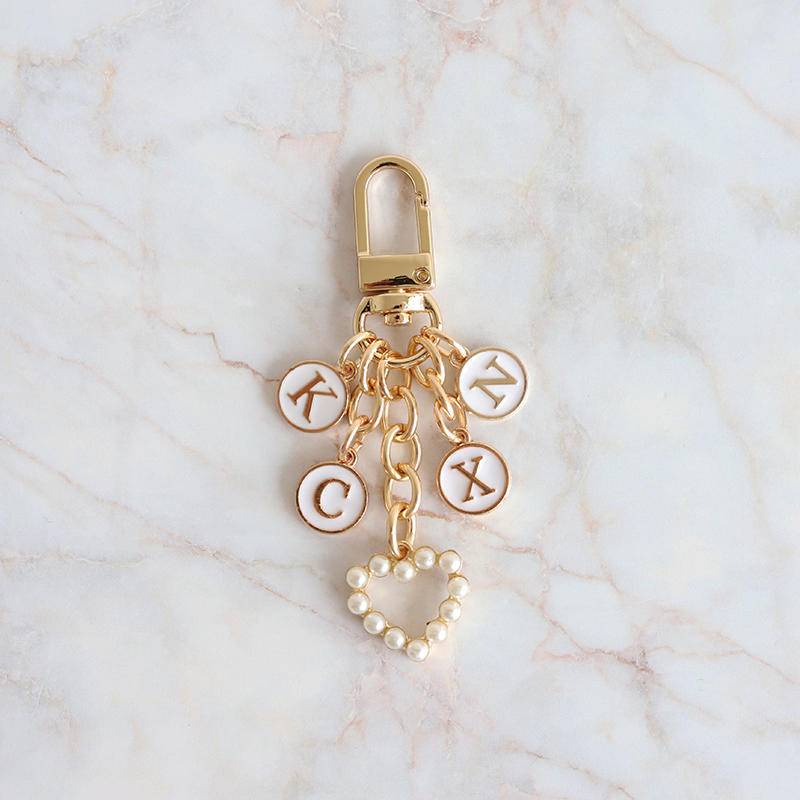 Customized Keychain Letter Pearl Love Keychain Bag pendant Creative Friend Gift Accessories