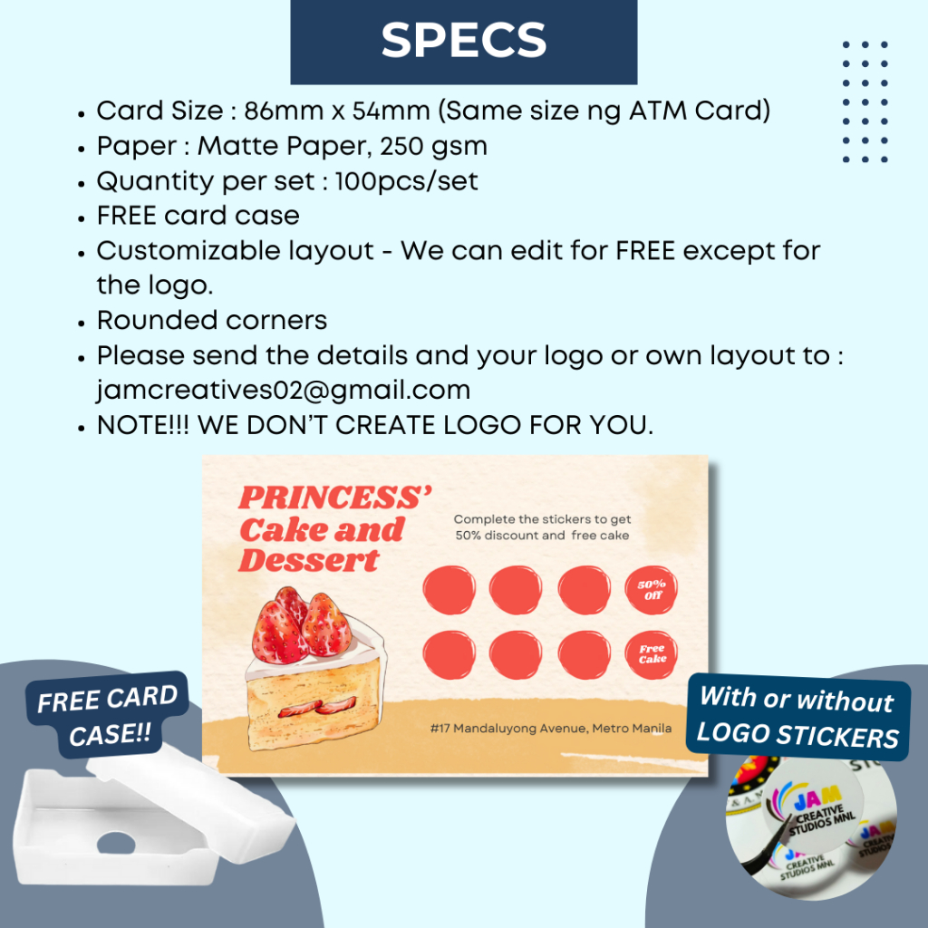Customized Loyalty Card with FREE Card Case, Rewards Card, Business Card, Voucher (100pcs per set)