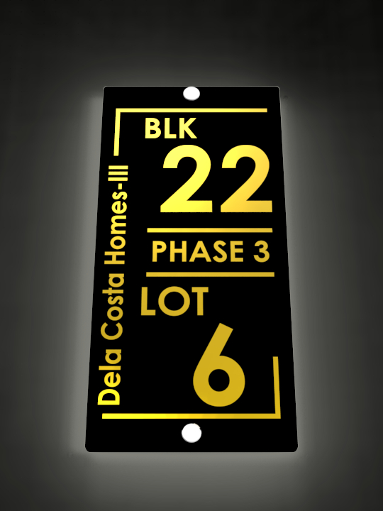 Customized Metallic Gold Customized House Address Plate Blk Lot Home Signage Plate 5.0mm Thick