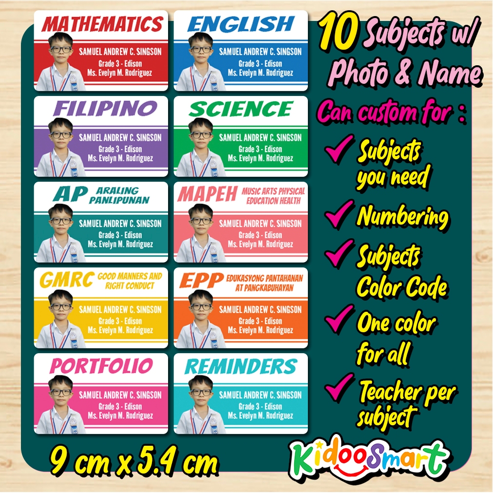 Customized Name w/ Photo Subject Label Stickers for Notebooks