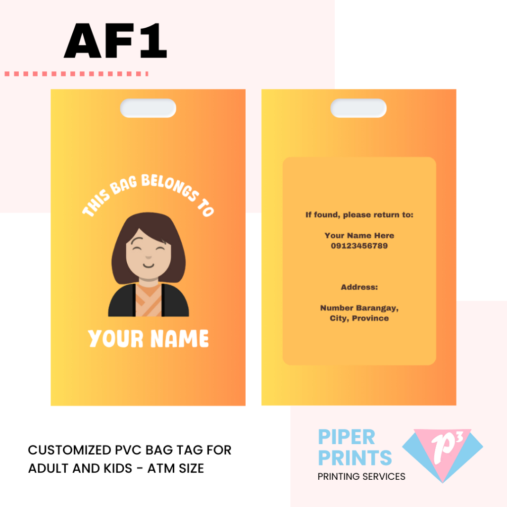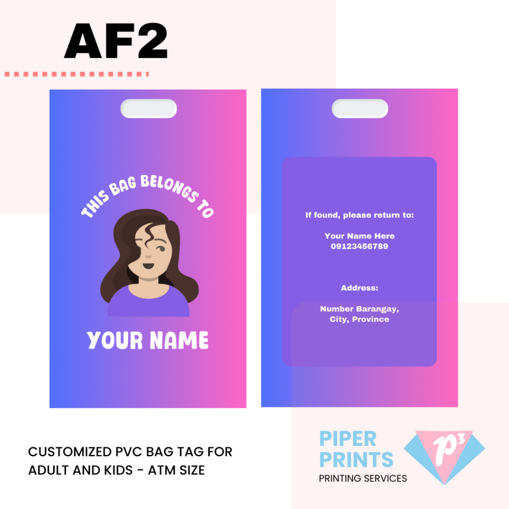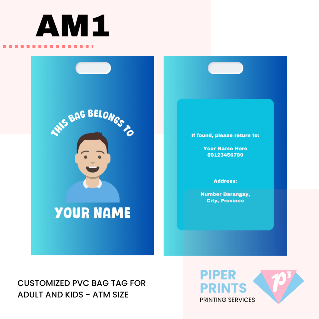 Customized PVC Bag Tag for Adult and Kids - ATM Size