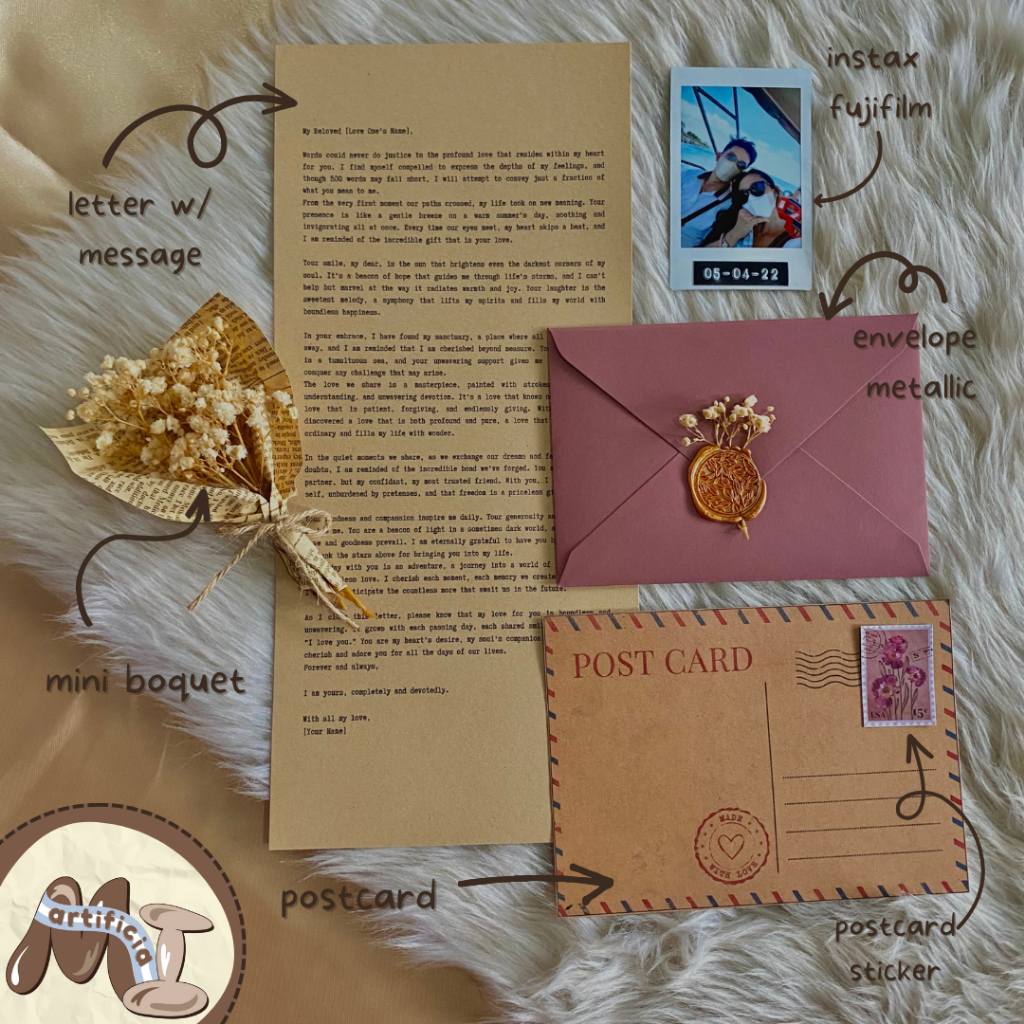 Customized Personalized Letter Gift Set I Typewriter Style I max 500words I Mini Boquet MI ARTIFICIA