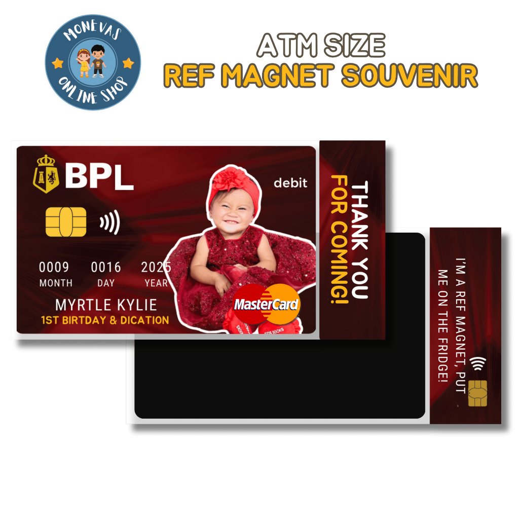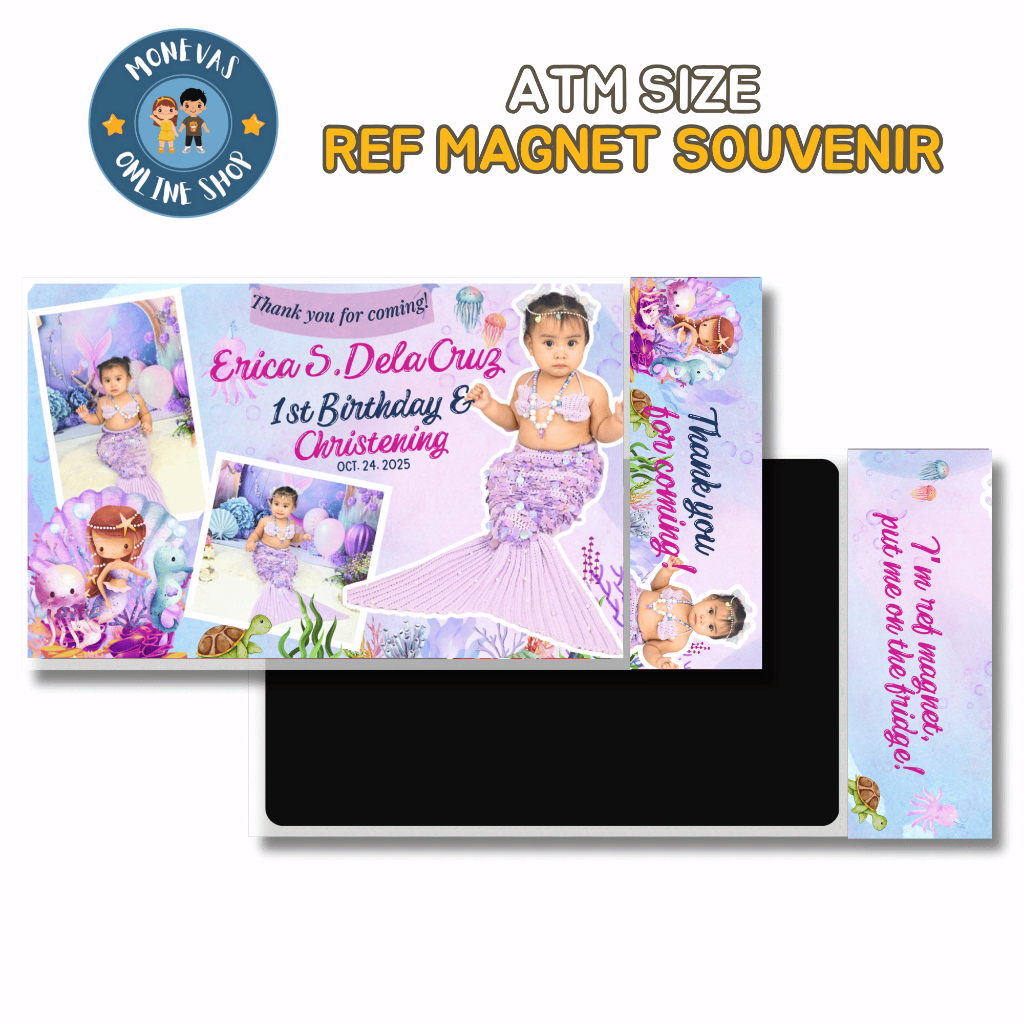 Ref Magnet Souvenir Personalized ATM size, Christening Baptism Birthday Wedding Giveaway Dedication