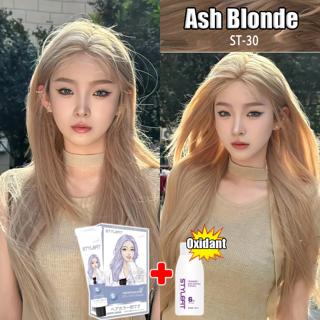 STYLEFIT Hair Color Permanent Ash Blonde (100ml Hair Dye+100ml Oxidizer) Premium Hair Dye Set