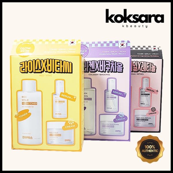 GGANBUBOX 1982 Skincare 3-piece set Light x Vita C, Collagen x Bakuchiol, Black Snail x Retinol