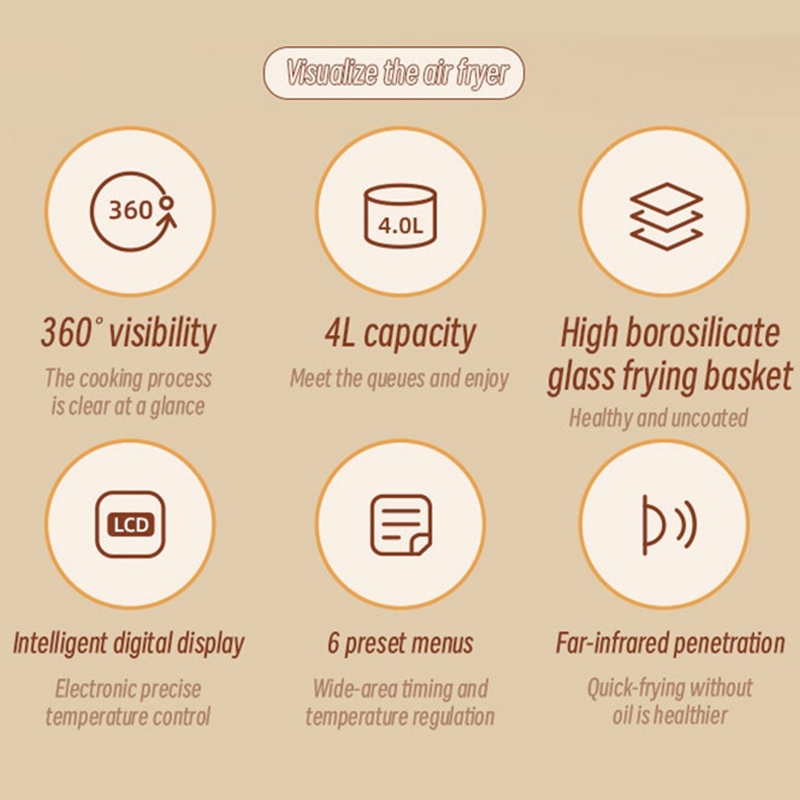 Air Fryer Household Smart Fryer Visible Glass Non-stick and Oil-free Touch Screen Electric Oven