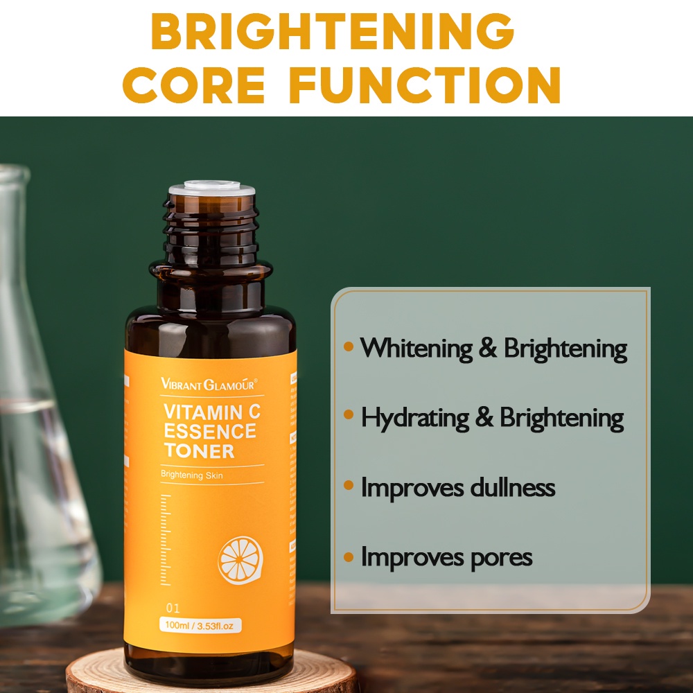 VIBRANT GLAMOUR FDA Vitamin C Toner Whitening Fading Dark Spots Reduce Melamsa Facial Essence Toner Moisturizing Hydrating Pore Minimizer Removing Skin Sallow for All Skin Types 100ml