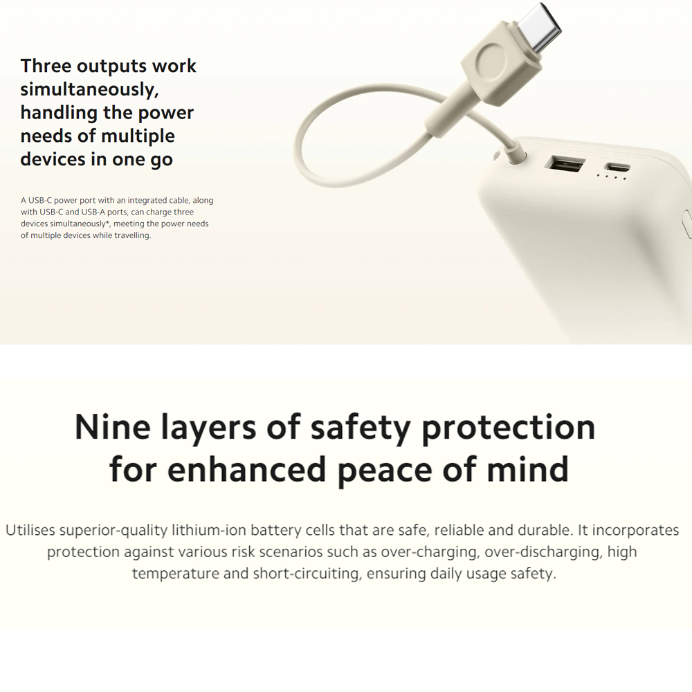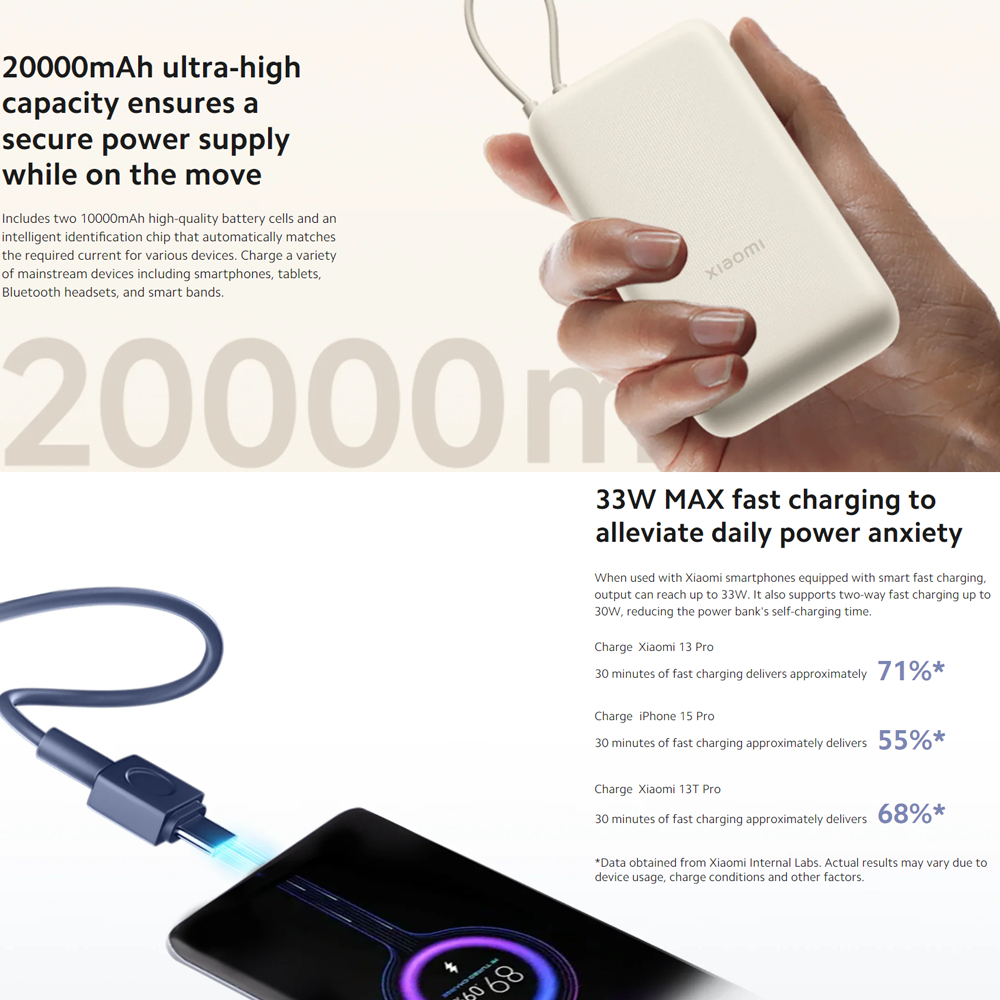 Xiaomi 33W Max Power Bank 20000mAh (Integrated Cable) Power Nine Layers Of Safety Protection