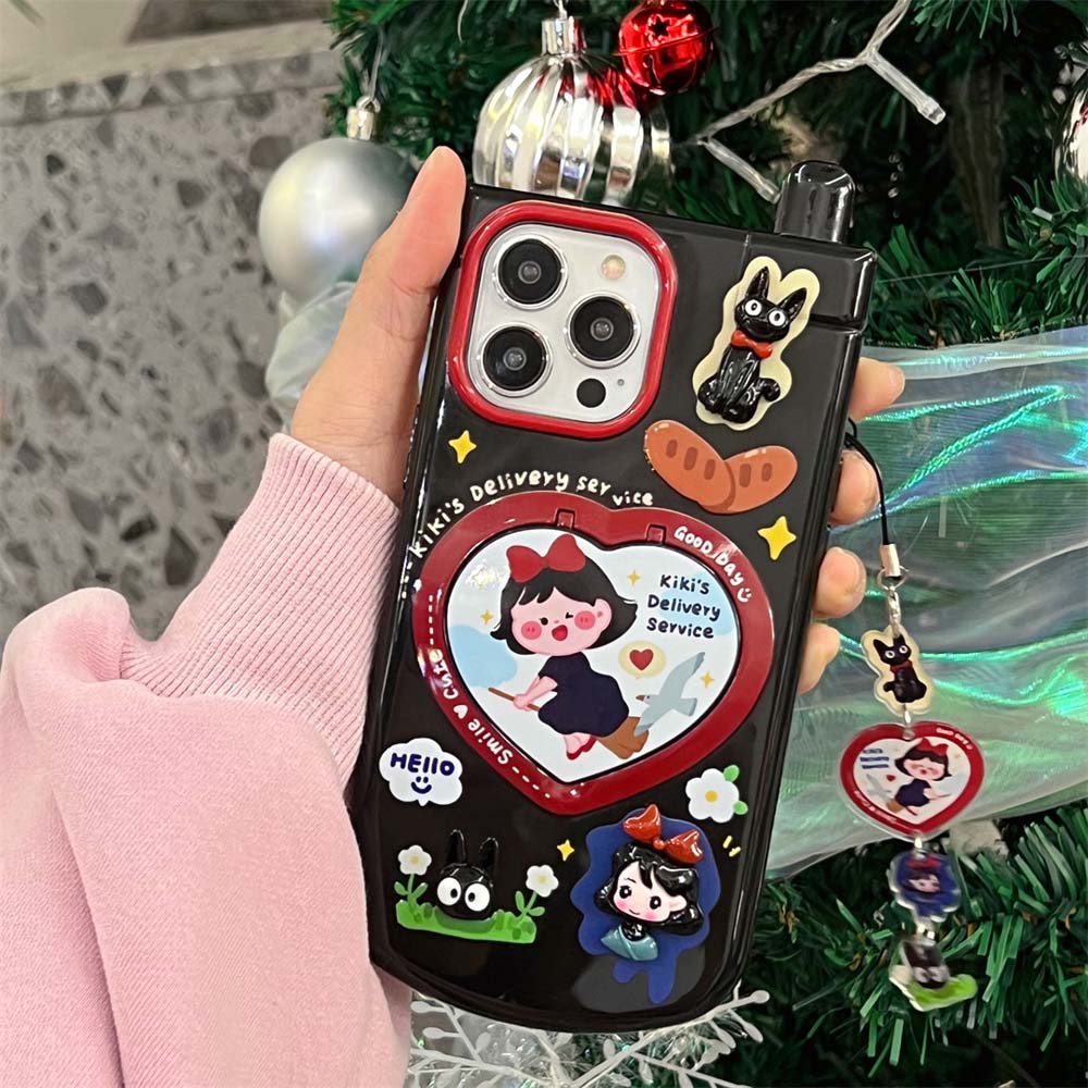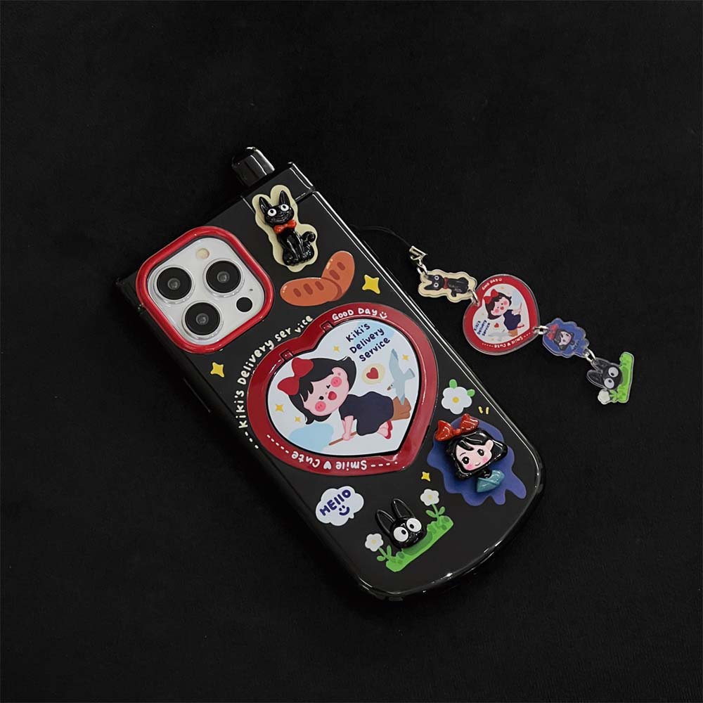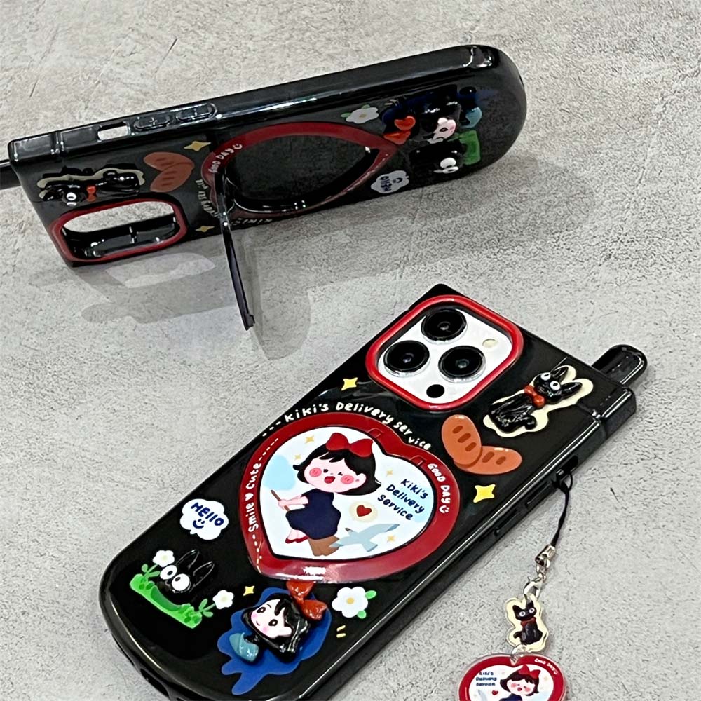 Cute 3D cartoon girl vintage telephone phone case compatible for iPhone 15ProMax 14ProMax luxury love mirror invisible bracket 11 12PROMAX 13PROMA TPU shockproof soft cover