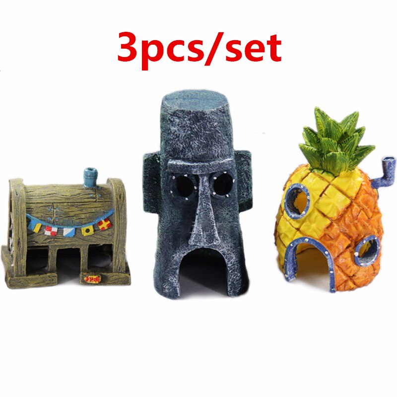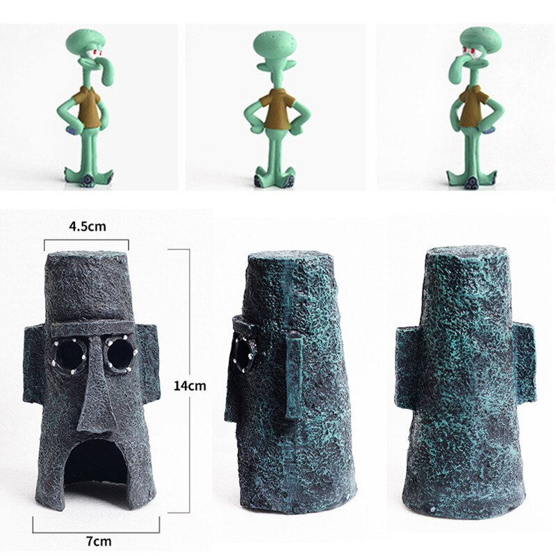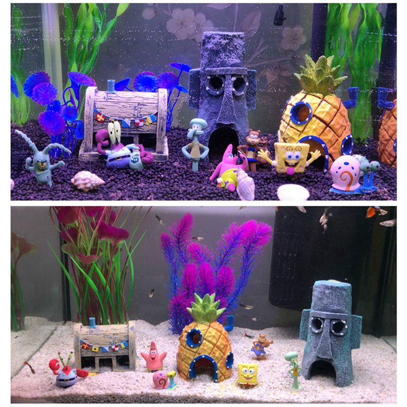 Cute Aquarium Spongebob Decoration Cartoon Figure Fish Tank Ornament Squidward Patrick Star House
