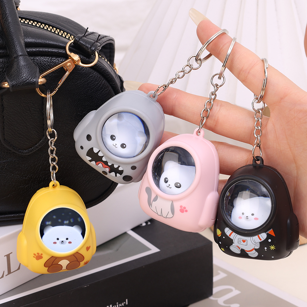 Cute Bear Star Astronaut Luminous Keychain - Couples Creative Night Light Key Chains - Backpack Pendant Growing Key Rings