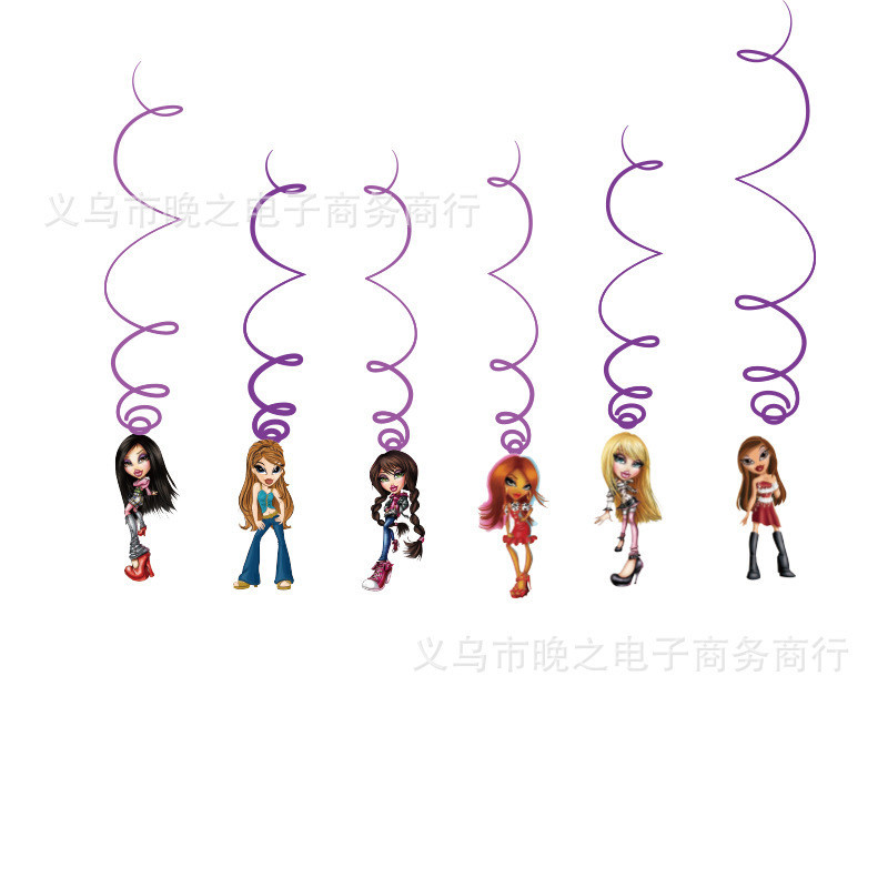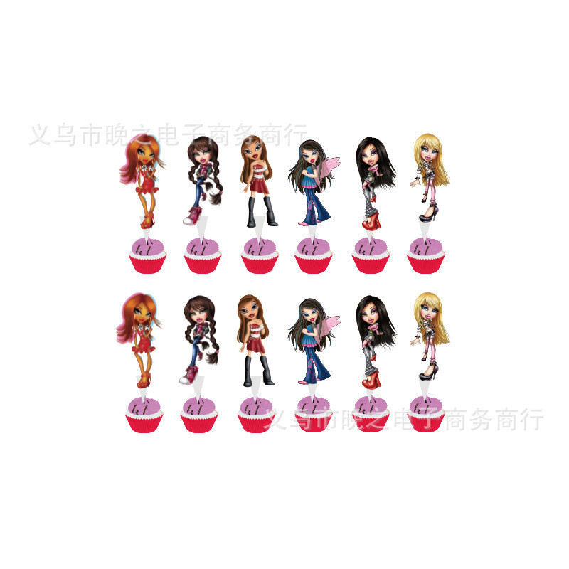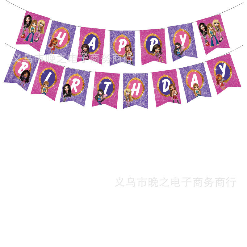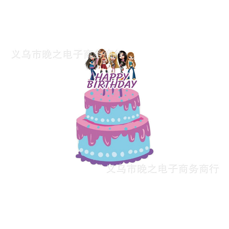 Cute Bratz Doll Birthday Party Supplies Children Girl Cartoon Banner Cake Topper Decorations Pink Photo Background Decoration
