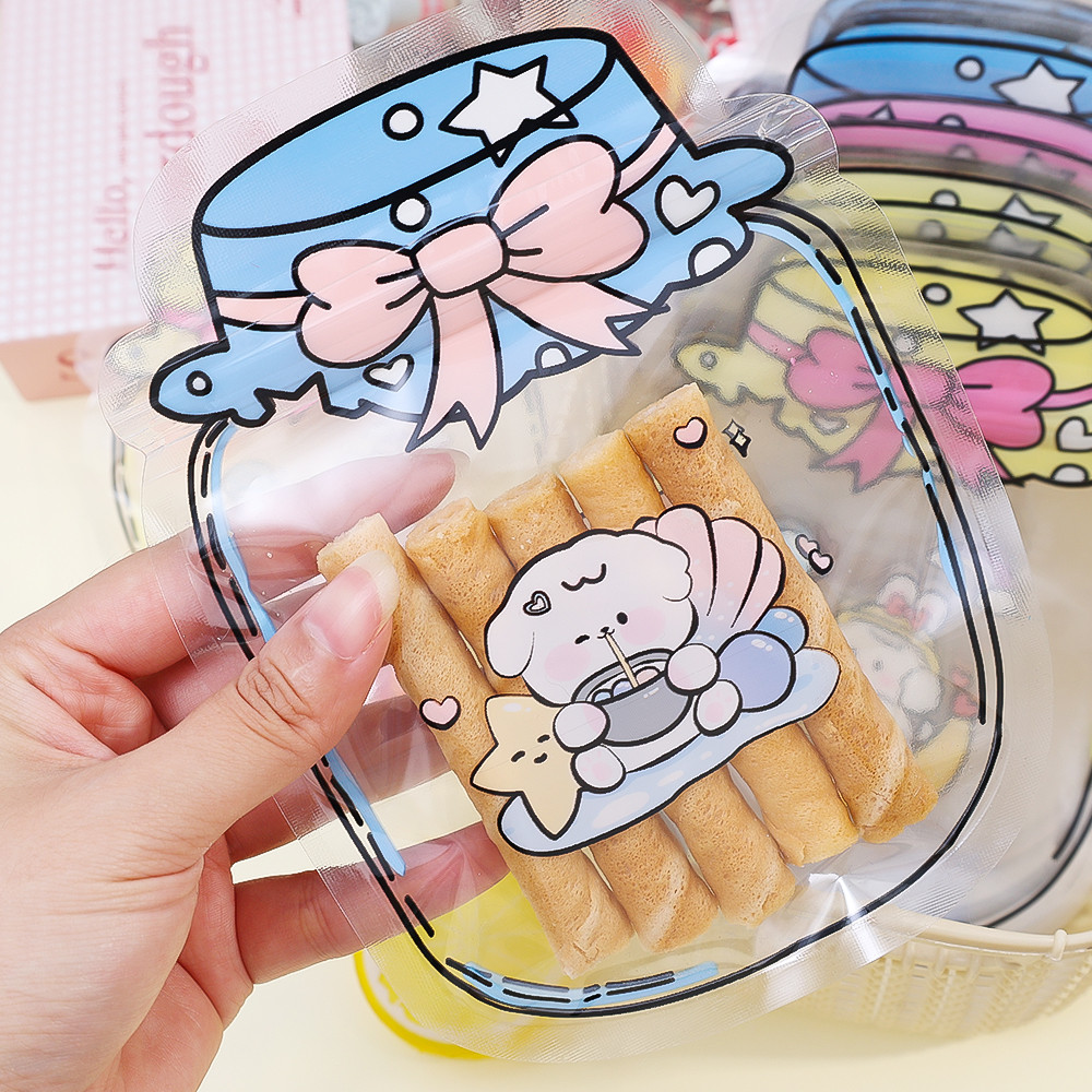 Cute Cartoon Bottles Shaped Self-sealing Bags Durable Candy Cookie Packaging Pouches Plastic Transparent Small Item Universal Storage Bag