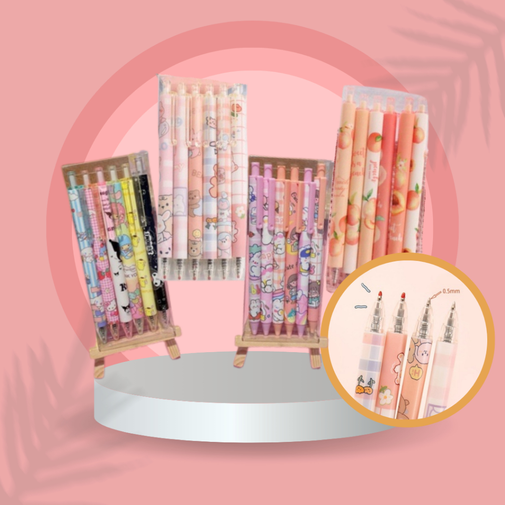 Cute Cartoon Bullet Head Black Ink Gel Pen 0.5mm/0.38mm Retractable Pen Press Type Pen ,6pcs/box.