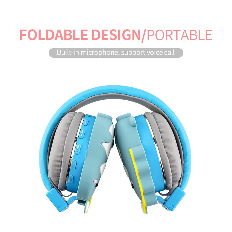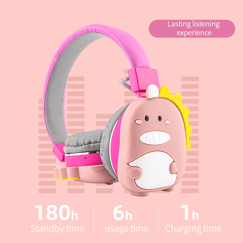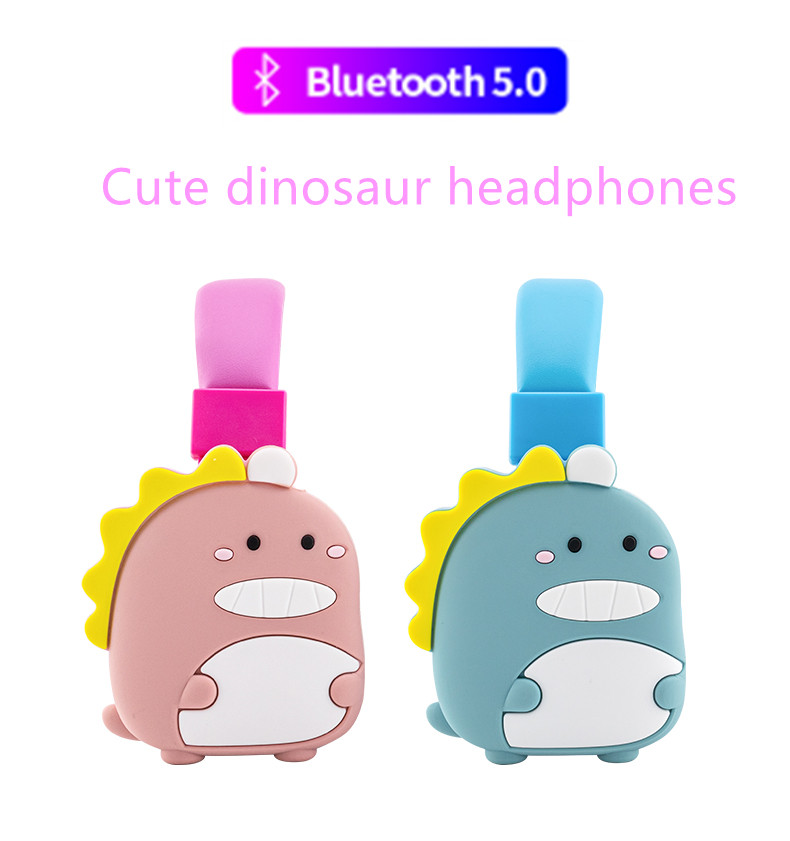 Cute Cartoon Dinosaur Bluetooth 5.0 Headset With Mic Wireless Music Headphones Stereo Phone Earphone For Children Glir Kids Gift