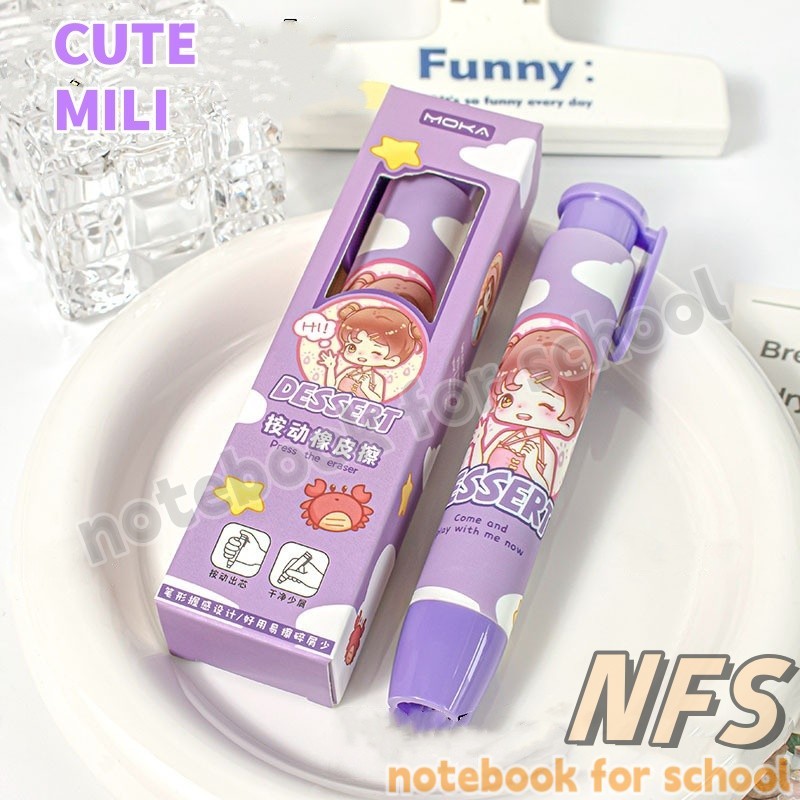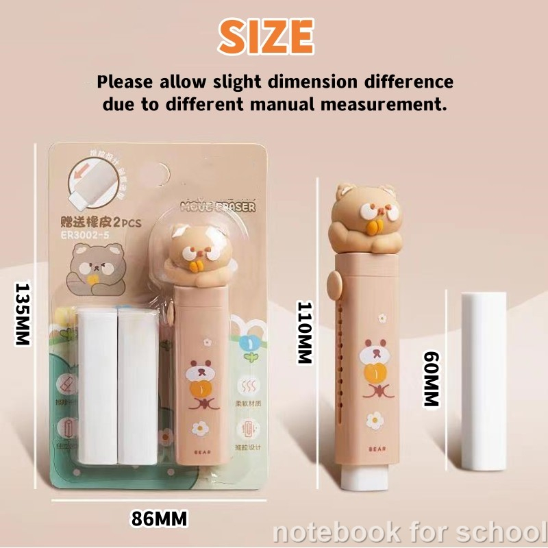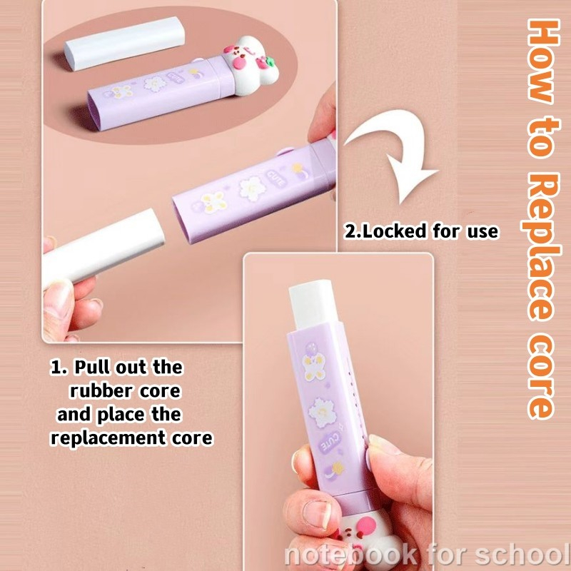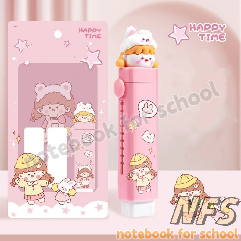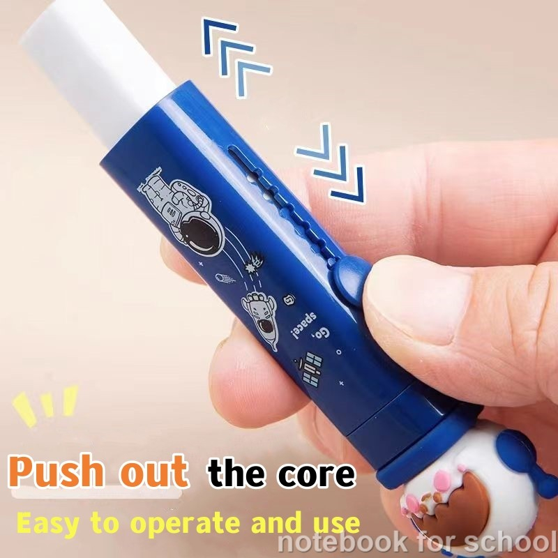 Cute Cartoon Pencil Eraser Retractable Pen Shape Eraser Student Portable Soft Rubber School Supplies