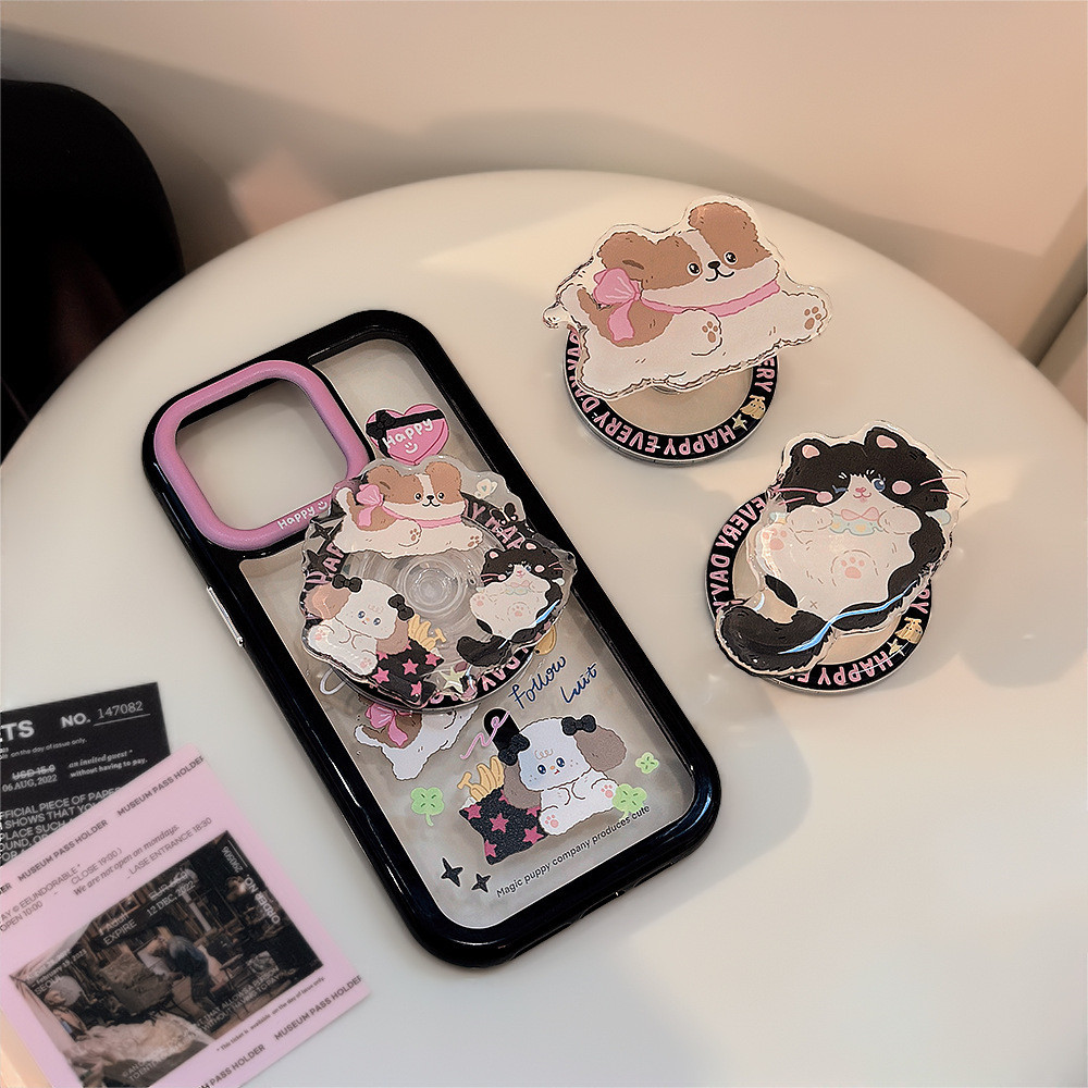 Cute Cartoon Round Magnetic Phone Holder for Magsafe Case and IPhone 15 14 13 12 Pro Max 14 Plus Foldable Ring Grip Stretchable Desk Stand Color P12