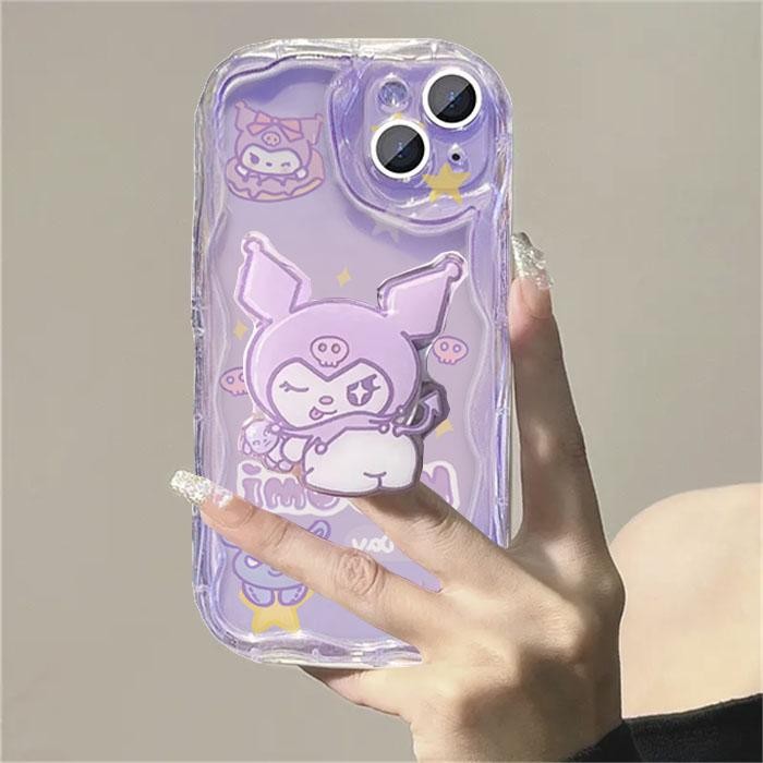 Cute Cartoon Sanrio Kuromi Melody Stand Holder Casing For Redmi Note 13 Pro 5G 12 4G Pro Plus 12S 11S 10S 11 10 8 9 Pro Max Bracket 3D Wavy Curved Edge Phone Case