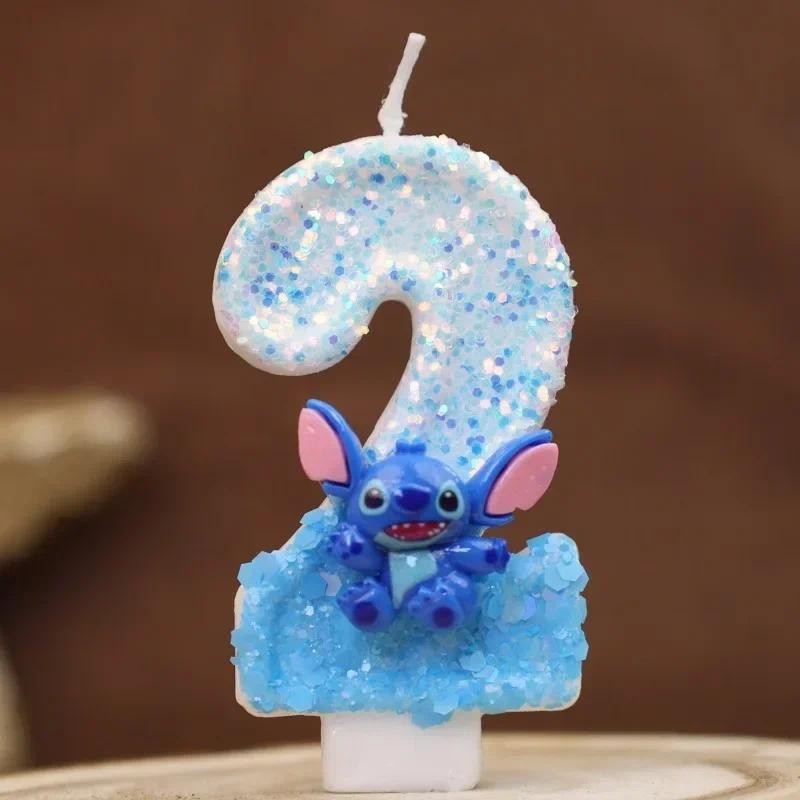 Cute Cartoon Stitch Birthday Number Candle Cake Topper Colour Changing Creative Stich Digital Candles Boys Birthday Party Decorations