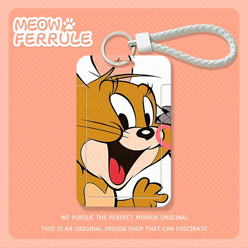 Cute Cartoon Tom and jerry Card Holder With Wirst strap ID Badge Name Tag Protector Case For Student