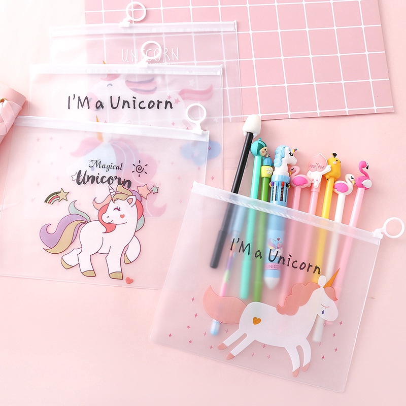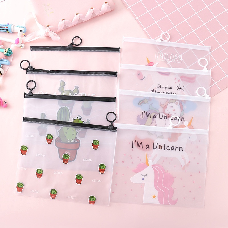 Cute Cartoon folder and Kawaii animal pencil case Transparent Paper Document organizer PVC material