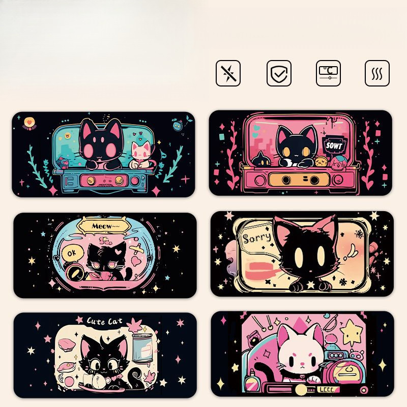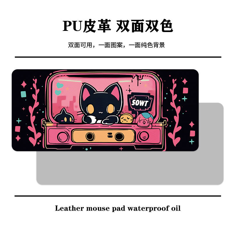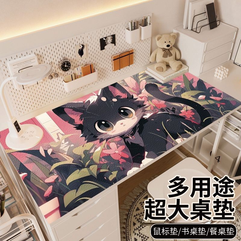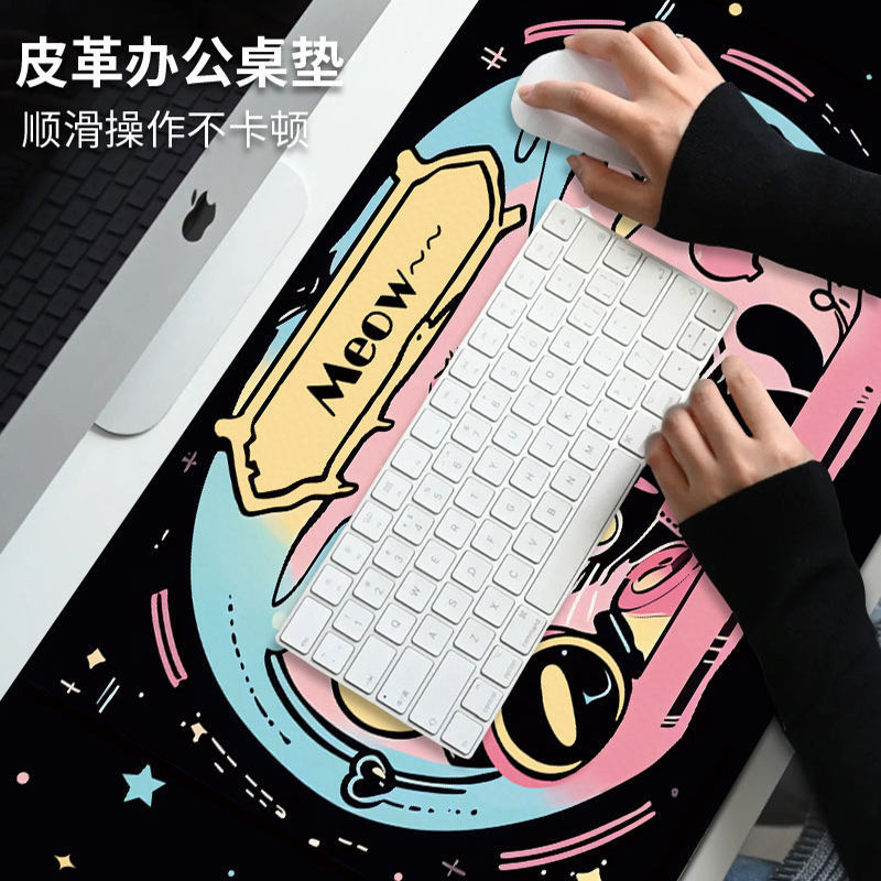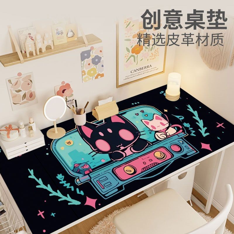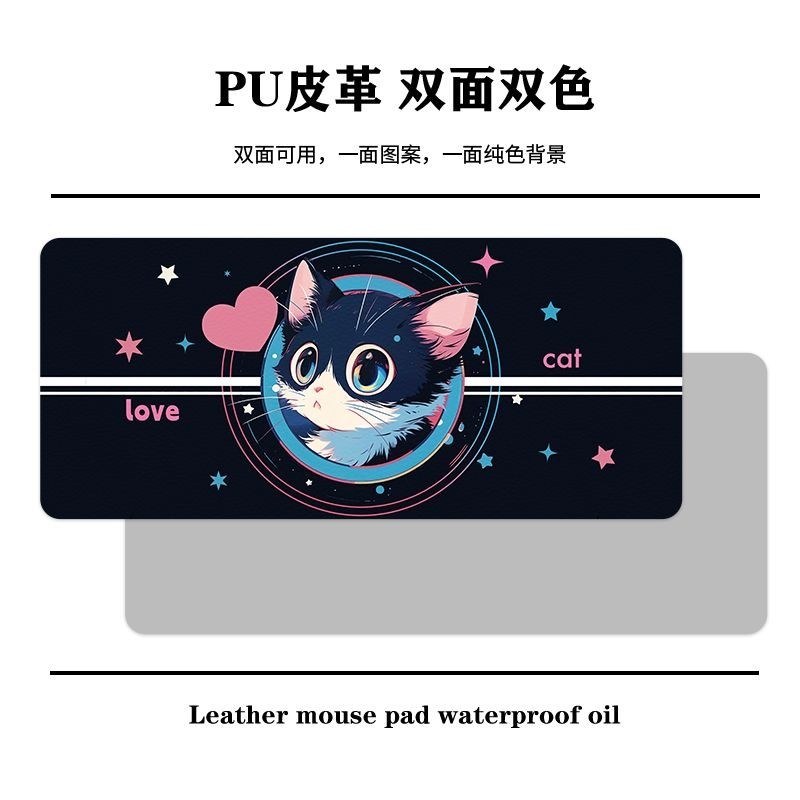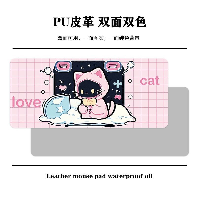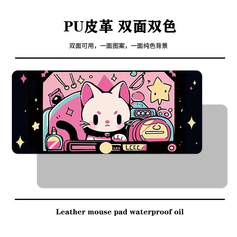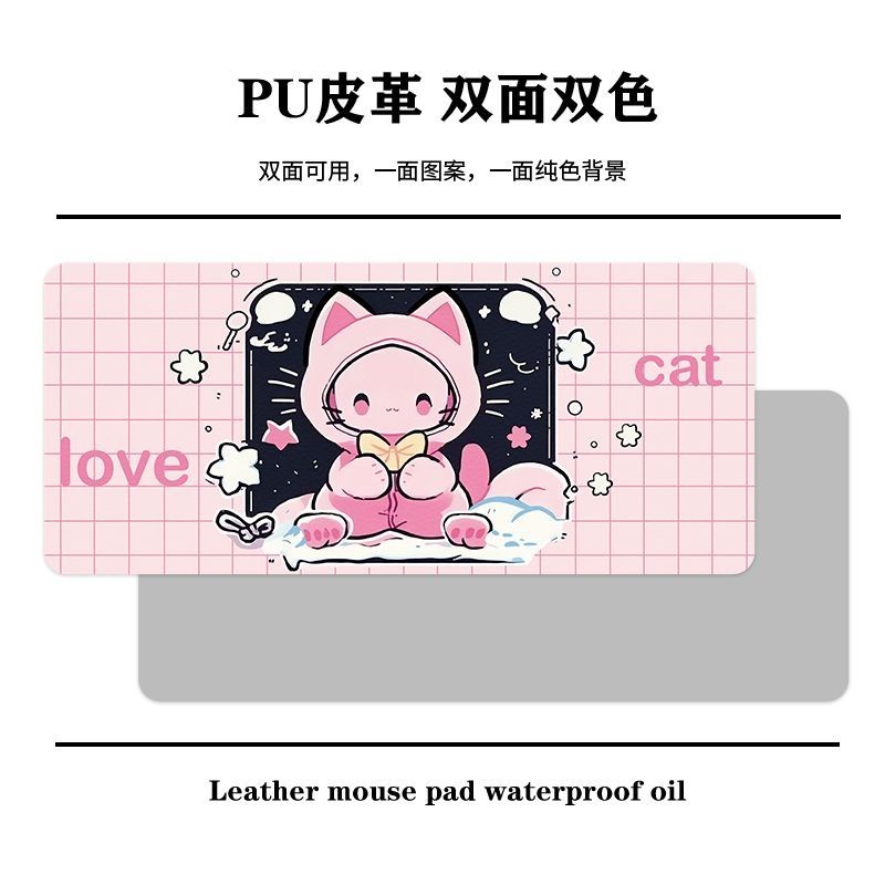 Cute Cat Leather Desk Mat Mouse Mat Oversized Student Desk Mat Waterproof Office Work Space Computer Desk Mat