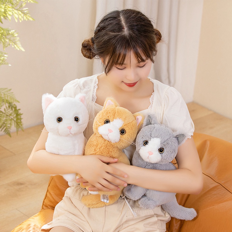 Cute Cat Plush Toy Lovely Grey White Black Brown Kitten Cat Plushies Stuffed Animal Doll Birthday Gifts Girl Child
