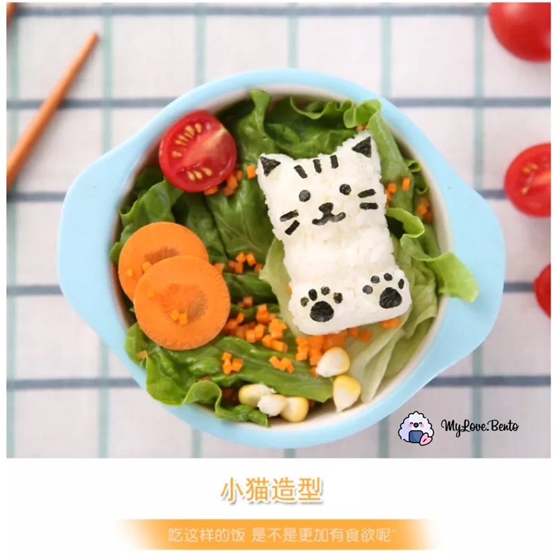 Cute Cat Rice Ball Mold with Seaweed Cutter Cartoon Rice Ball Mold Set