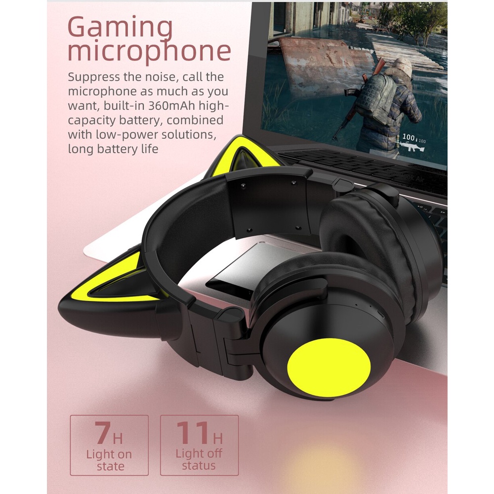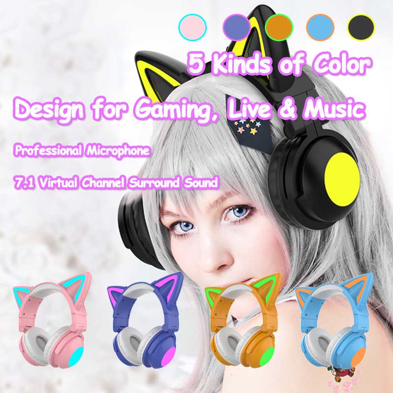Cute Cat Wireless Headsets Girls Gift Headphones with Microphones RGB 7.1 Stereo Music Bluetooth Earphone Gifts