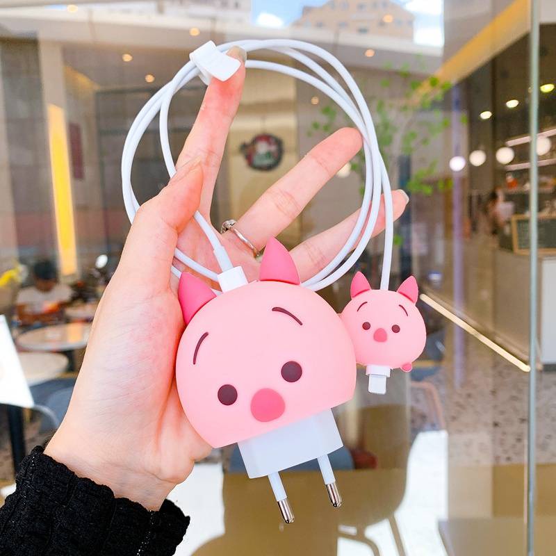 Cute Charger Case USB Cable Protector Cord Protection Soft TPU Cover Cartoon Melody Avocado No Face man Data Charger Protective Cover for 18W/20W Charger