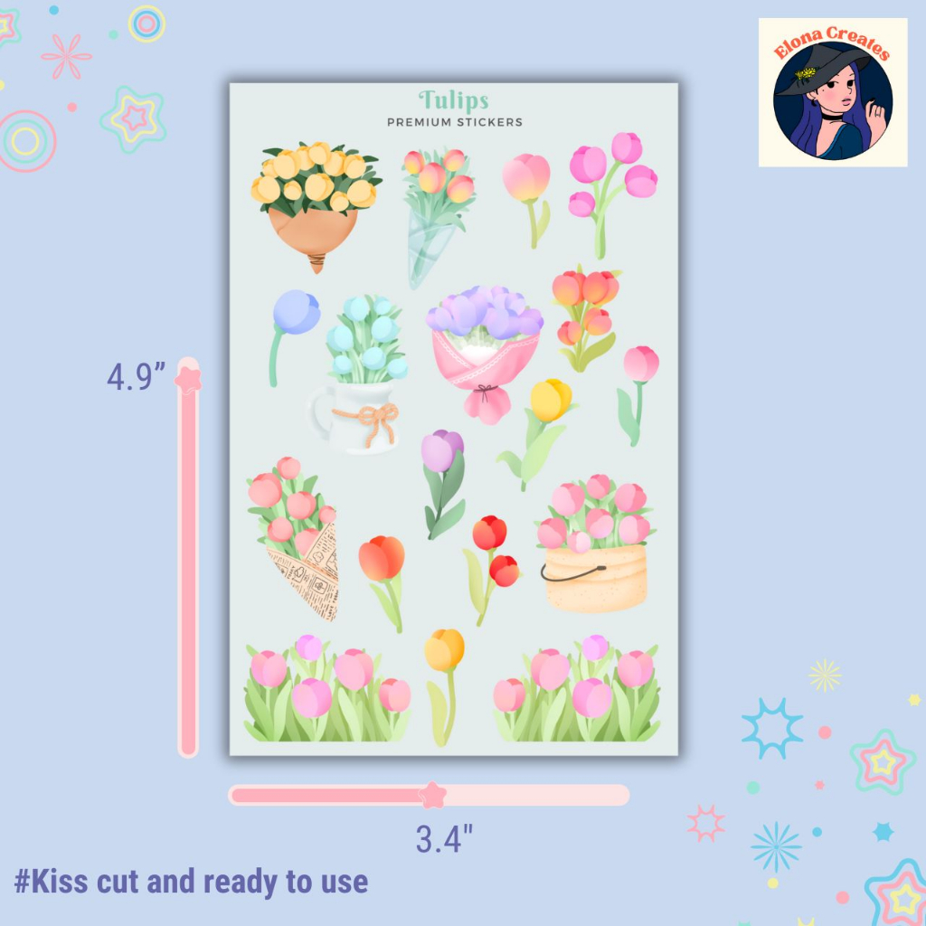 Cute Flower Tulips Sticker Sheet For Planners And Journals EC-1211