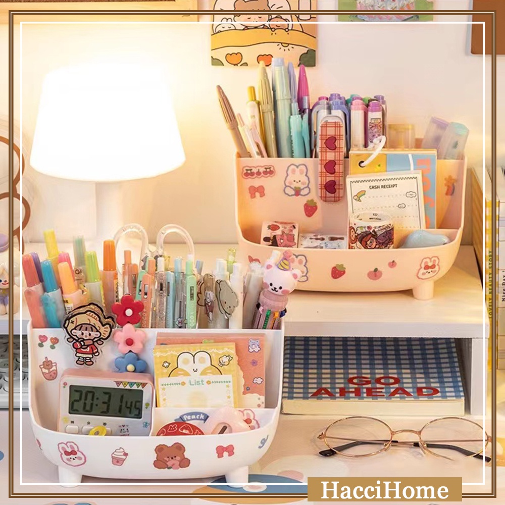 Cute Girl Desk Organizer Pen Holder Table Storage Student Desk Desktop Large Capacity Storage Box