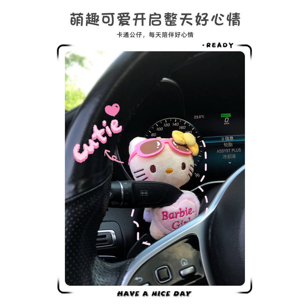 Cute Hello Kitty Car Gear Decoration Car Decoration Cartoon Car Interior Plush Doll Wiper Turn Light Accessories Cute interior decoration for cars