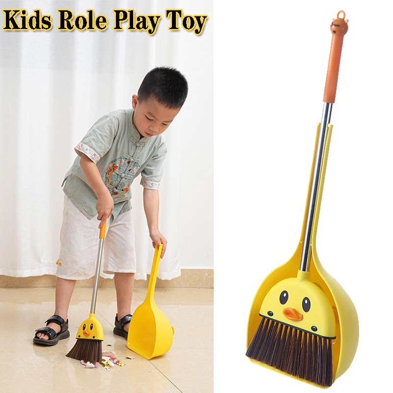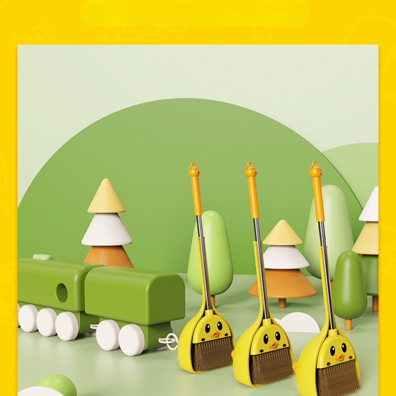 Cute Kids Broom Small Yellow Duck Children Mini Soft Fur Broom Dustpan Combo Household Cleaning Tool