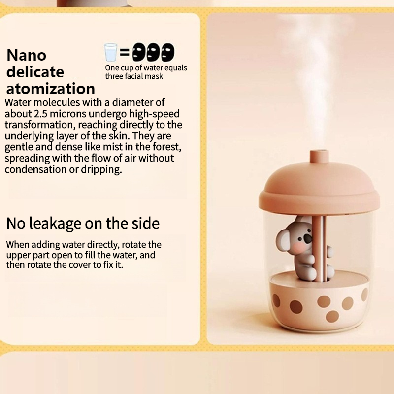 Cute Koala Cute Pet Milk Tea Cup humidifier household Bedroom, desktop, office, dormitory Air humidifier Mini Mini Mute cartoon