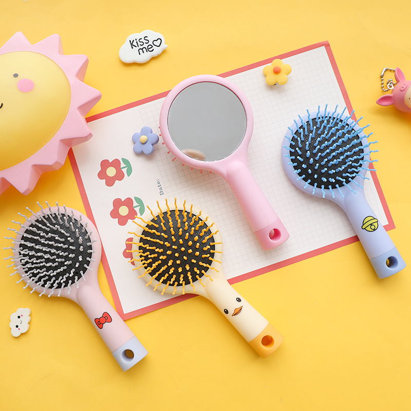Cute Korean Mini Air Cushion Comb with Little Mirror Portable Tik Tok Women Makeup Hair Tool
