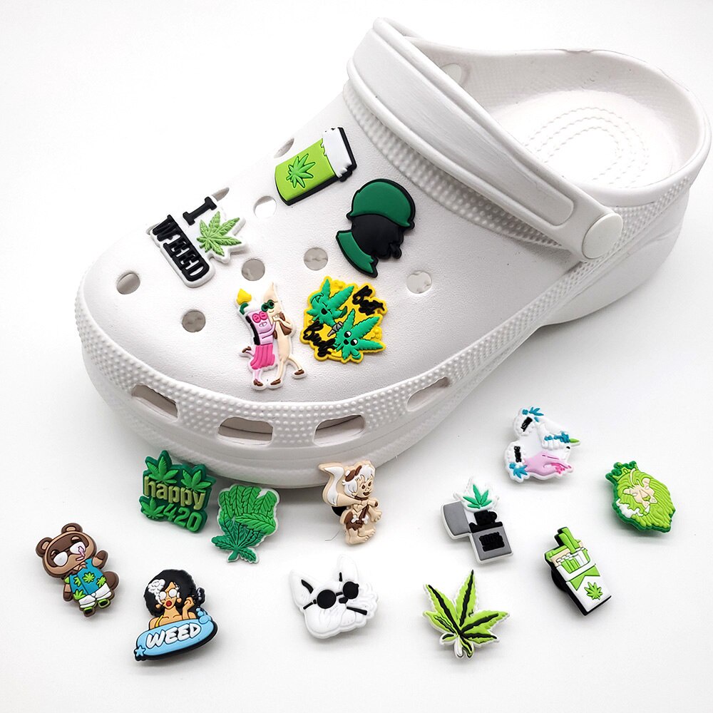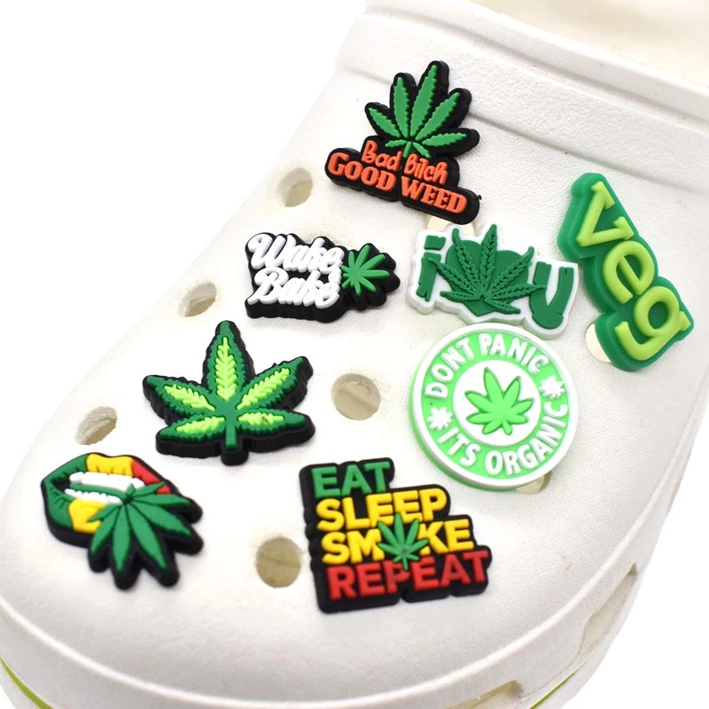 Cute Leaf Cannabis Series design Design Pins Jibits Charm design Jibbits Green Weed Shoe Charms for Women Shoes Accessories Decoration