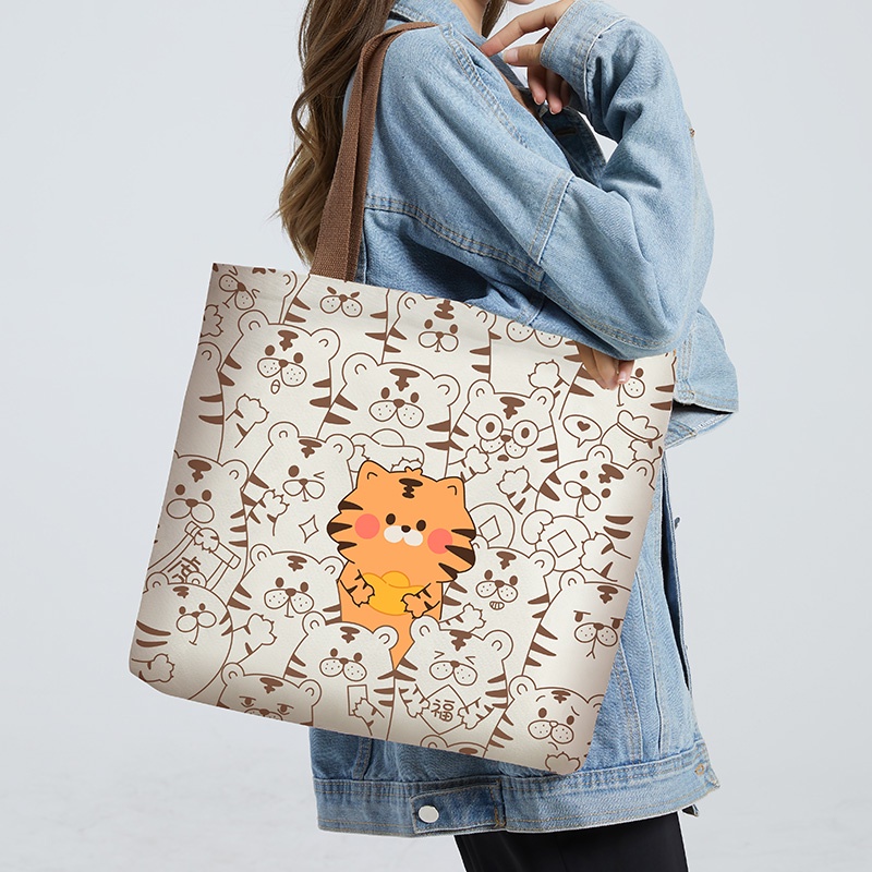 Cute Pattern Shopping Bag Tote Bag Canvas Reusable Shoulder Bag Tote Bag for Shopping Everyday