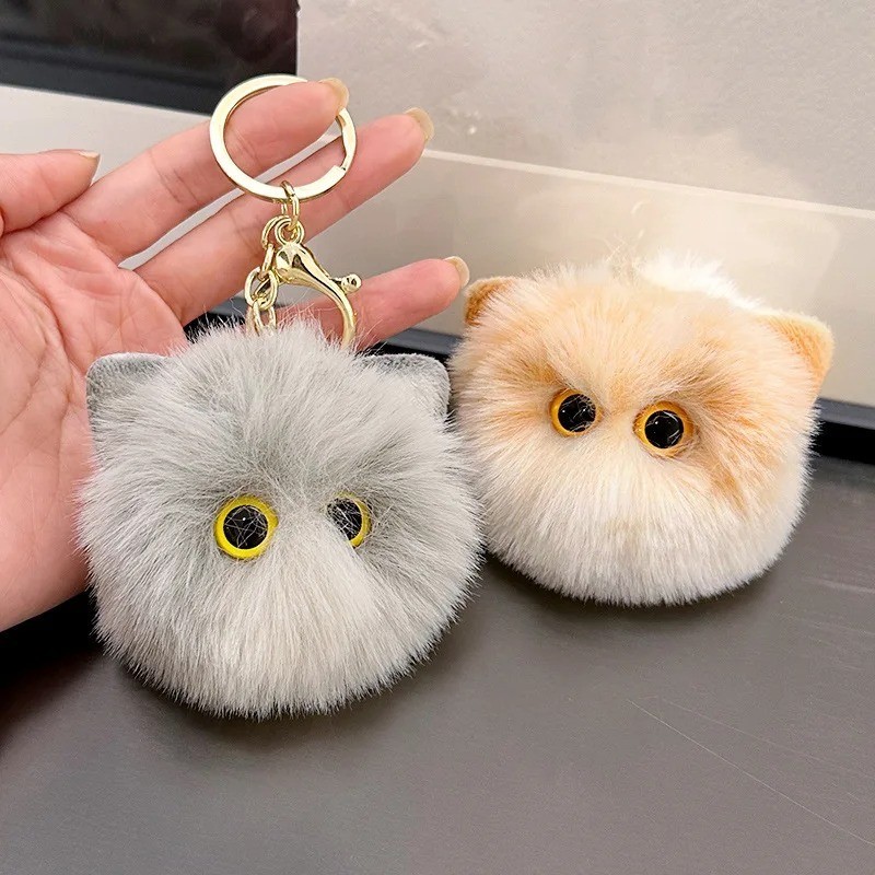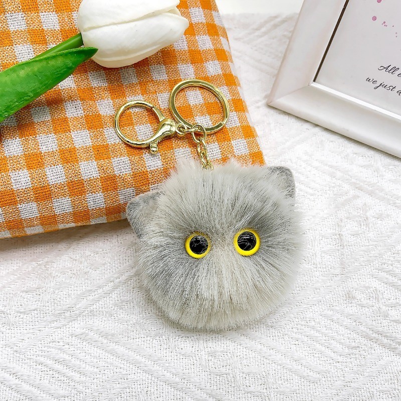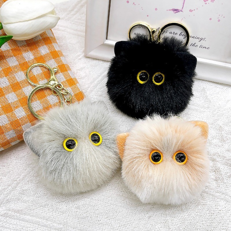Cute Plush Cat Keychain Cartoon Doll Toy Key Ring Soft Pompom Hairball Car Key Chains For Schoolbag Ornaments Graduation Gift