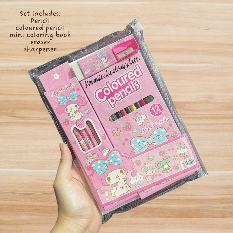Cute Sanrio Pencil Set Color Pencil Eraser Melody Kuromi