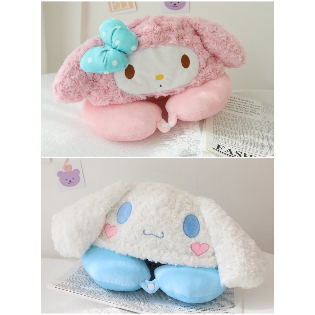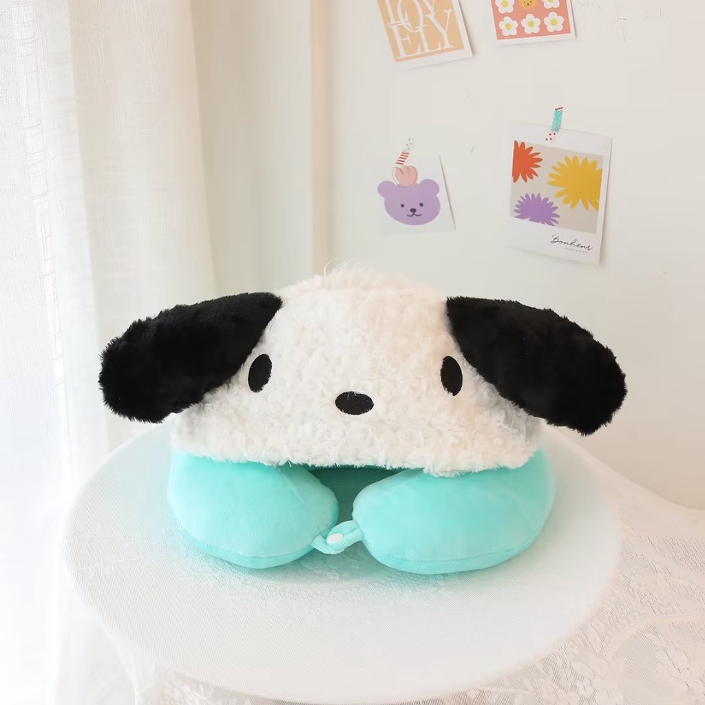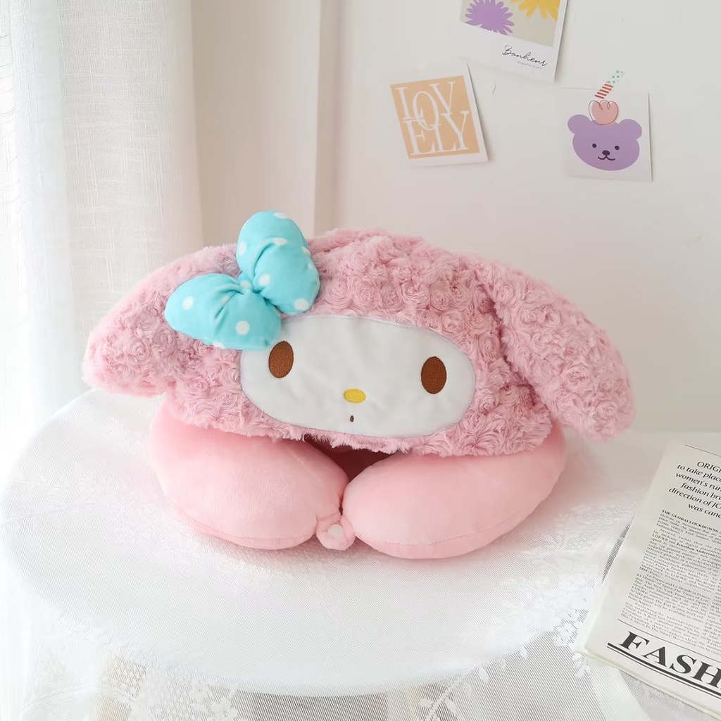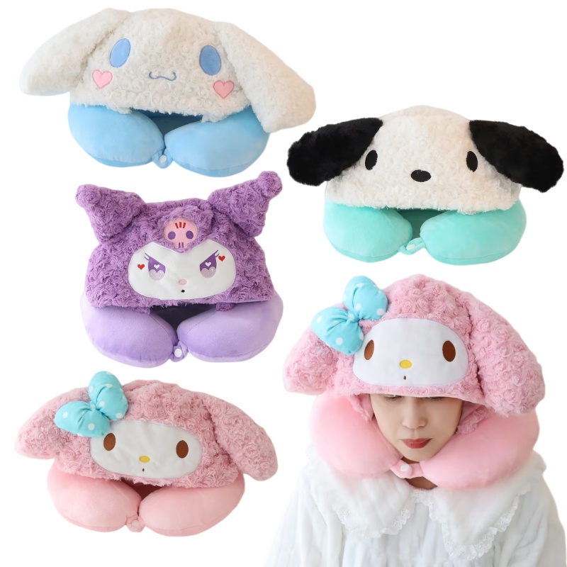 Cute Sanrio U-shaped Pillow with Cap Anime Kuromi Cinnamoroll Pochacco Travel Neck Pillow Nap Pillow Birthday Gifts