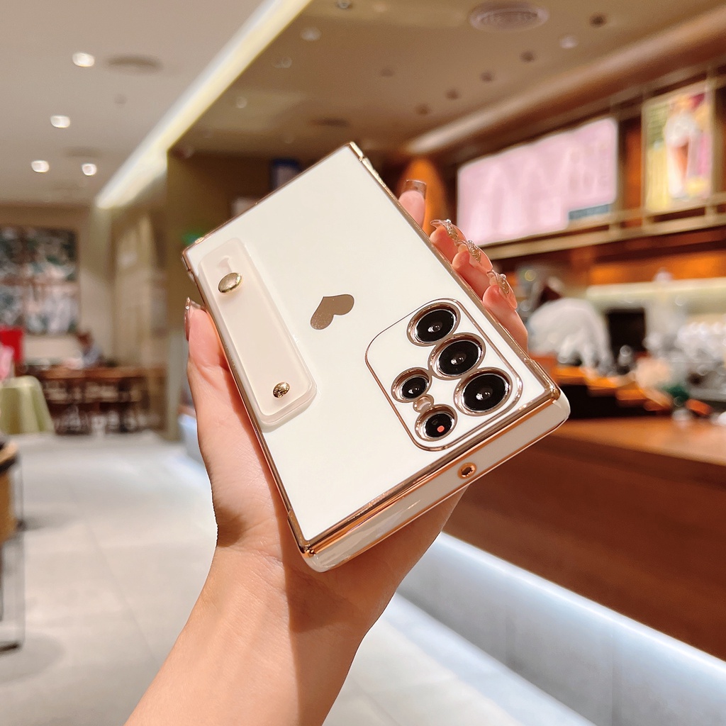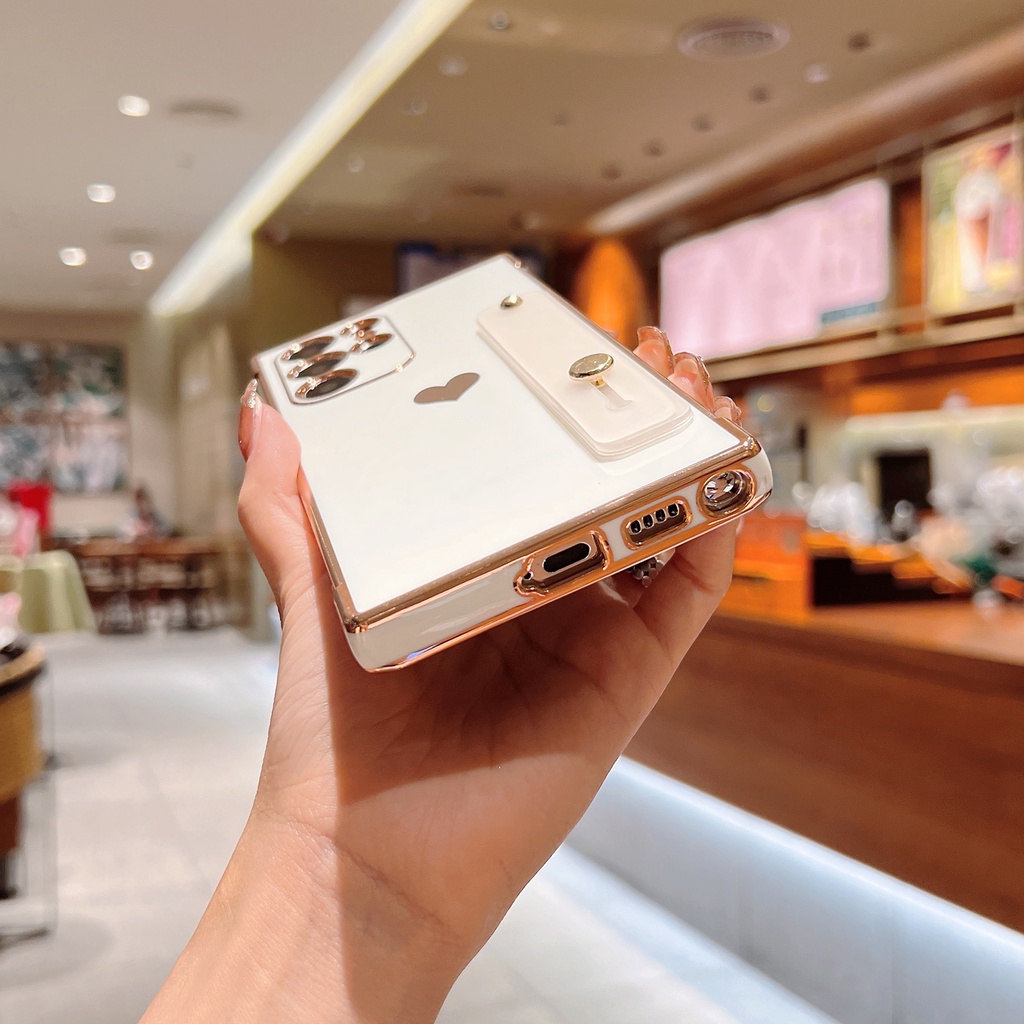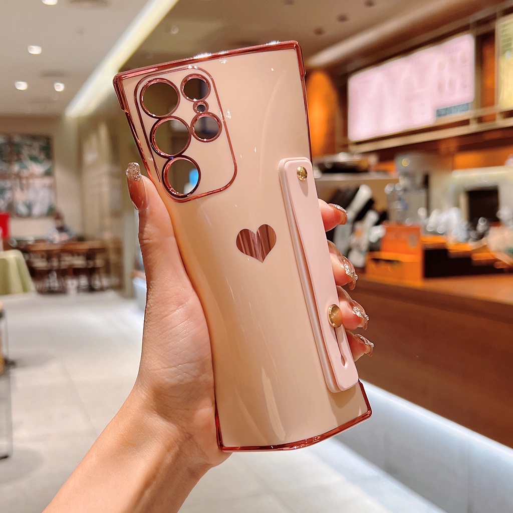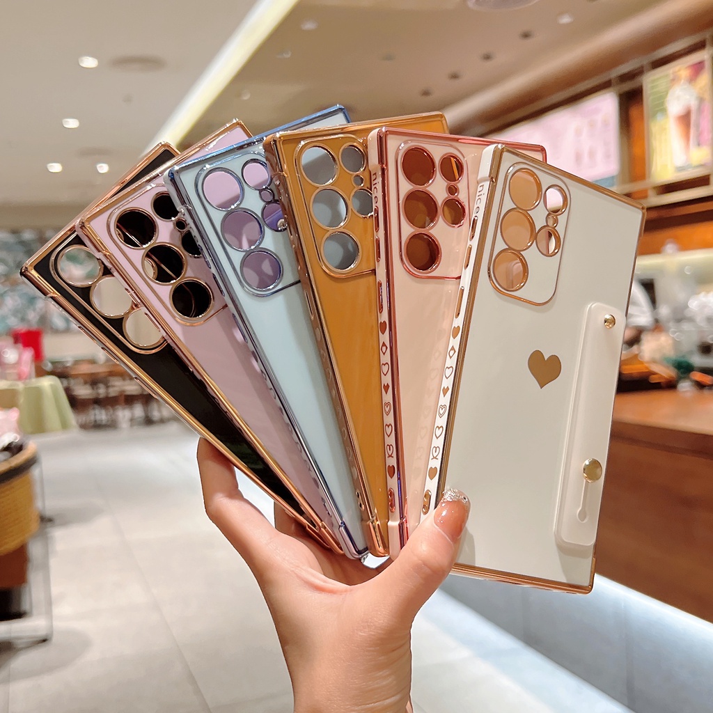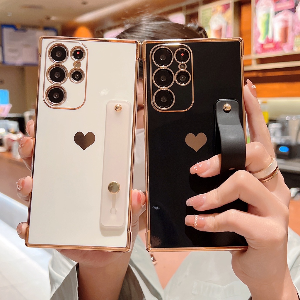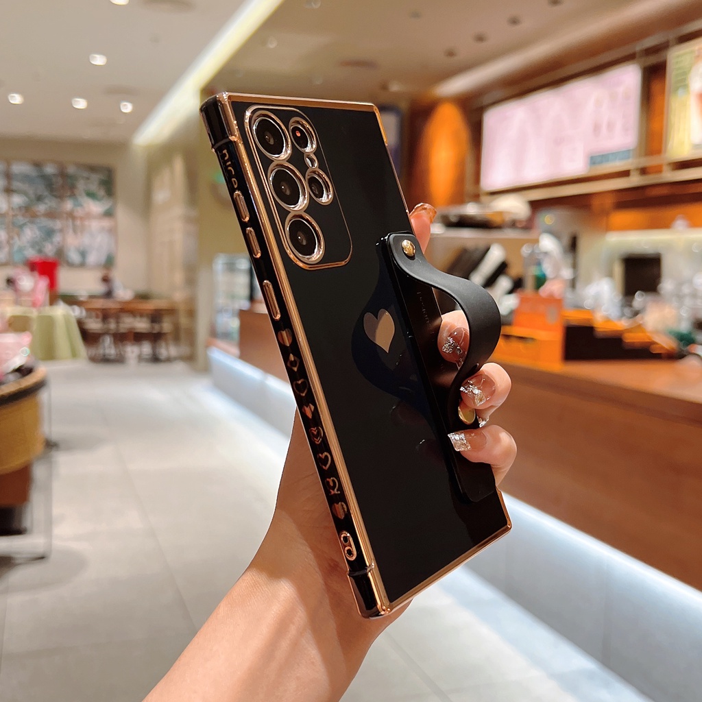Cute Side Love Hearts Square Case For Samsung Galaxy A53 A13 A52 A12 5G S21 S22 Ultra Plus S21FE S20FE Wrist Strap Soft Cover