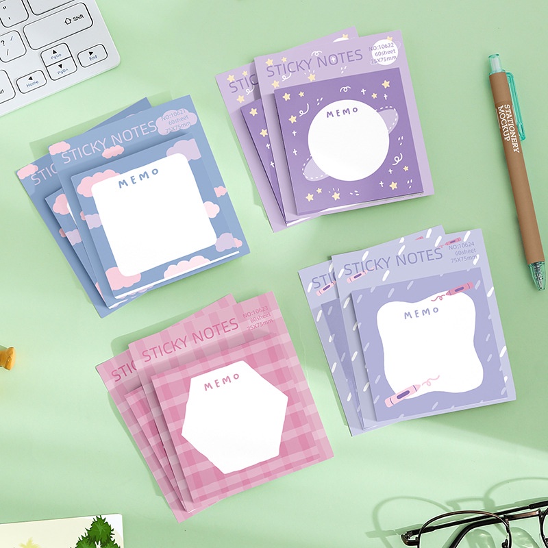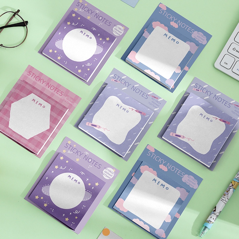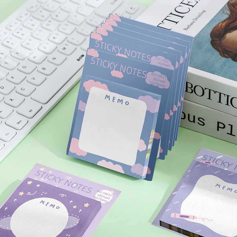 Cute Simple Color School Student MEMO Sticky Notes Post it Clouds Space Hex Pens