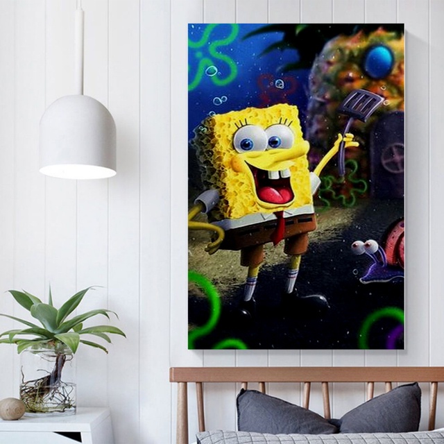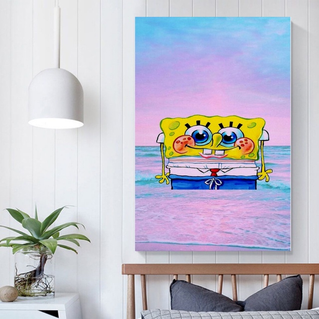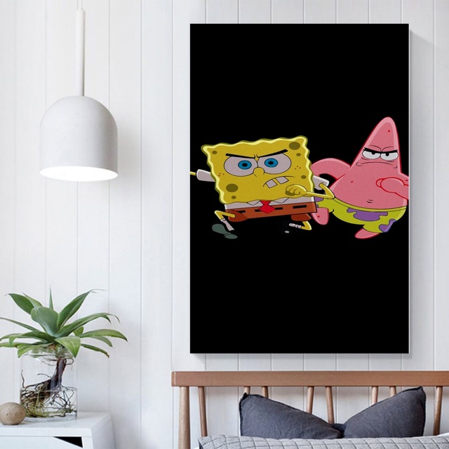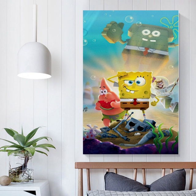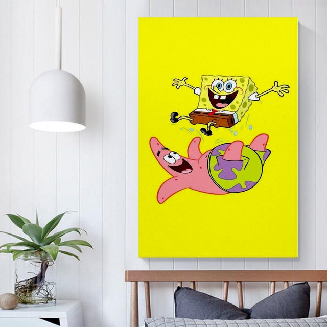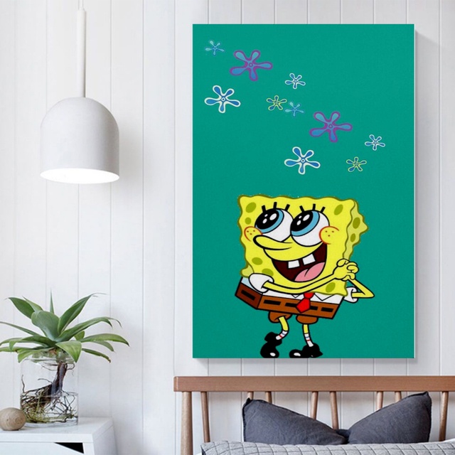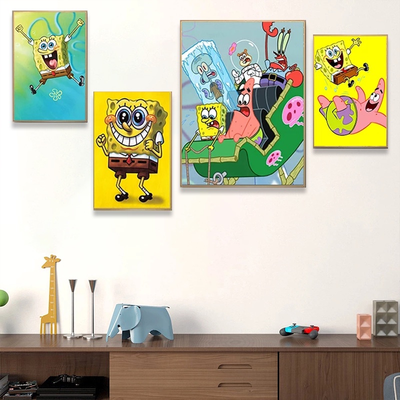 Cute Spongebob Squarepants Classic Anime Posters Comics Canvas Painting Wall Art Prints Picture for Kids Room Nursery Home Decor Frameless