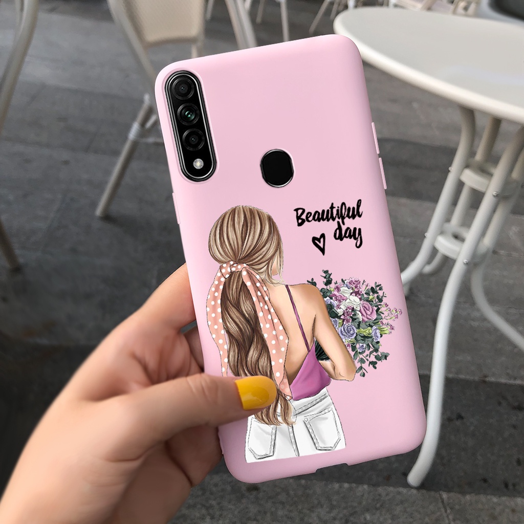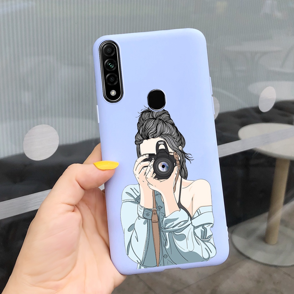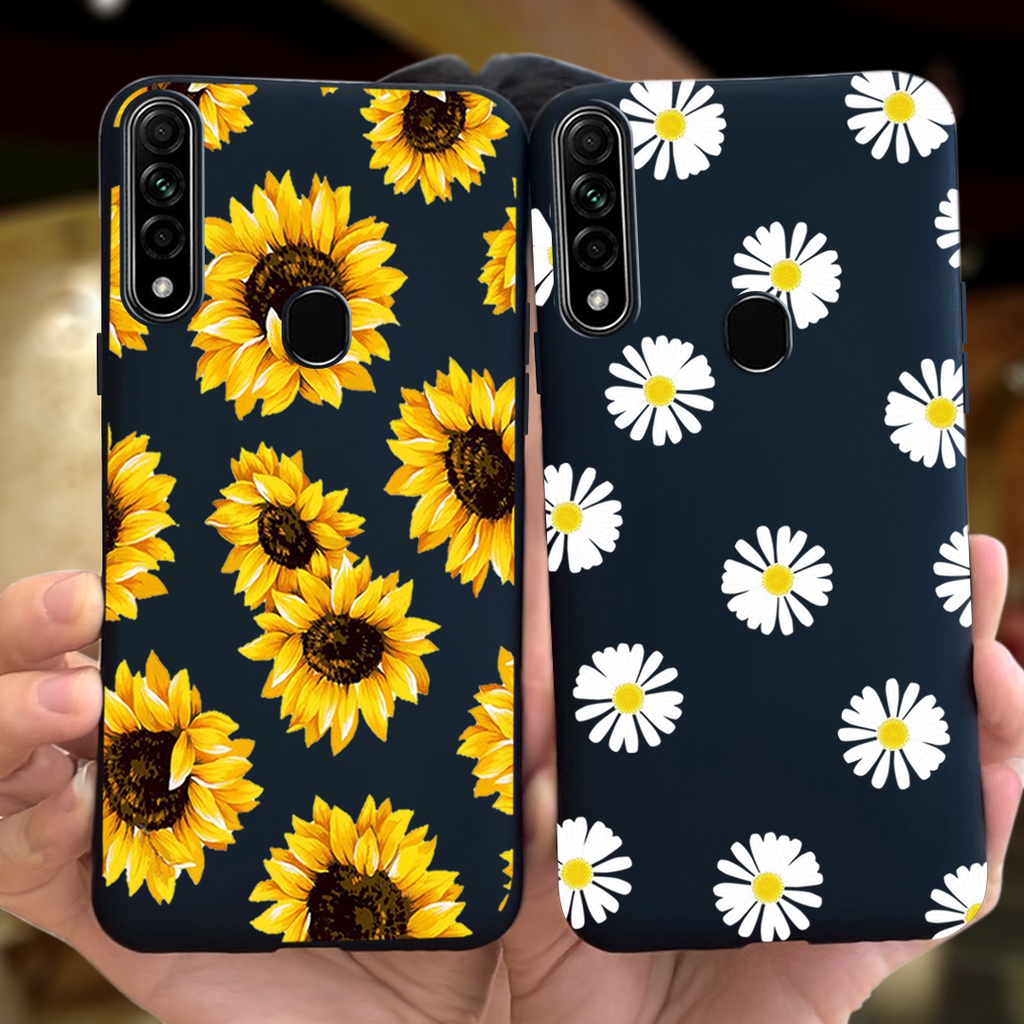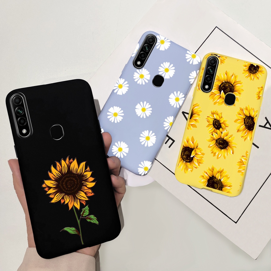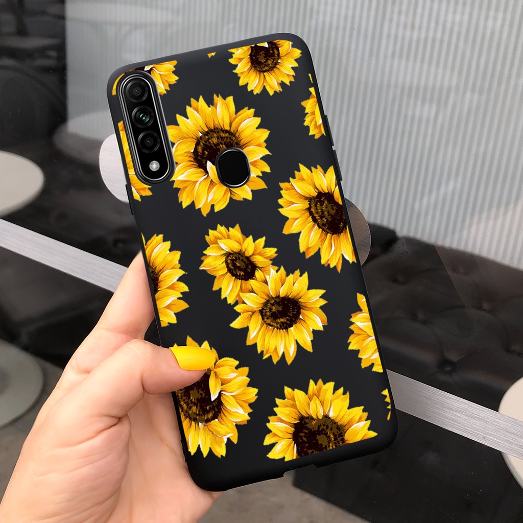 Cute Sunflwer Gril Painted Casing OPPO A31 2020 / A8 2019 Candy Color Soft Silicone TPU Phone Case