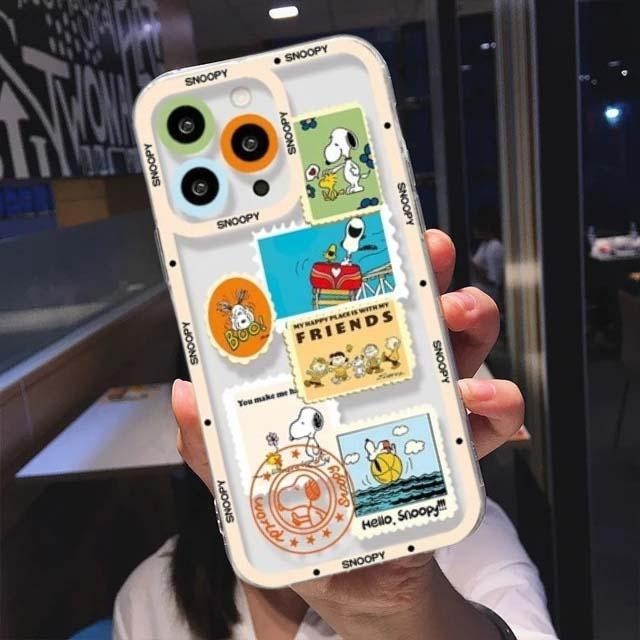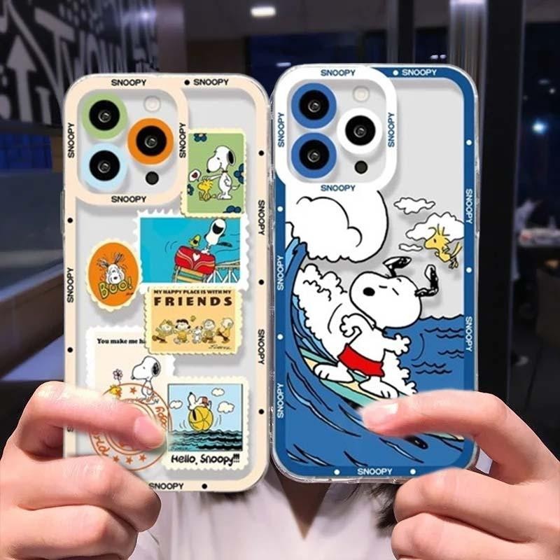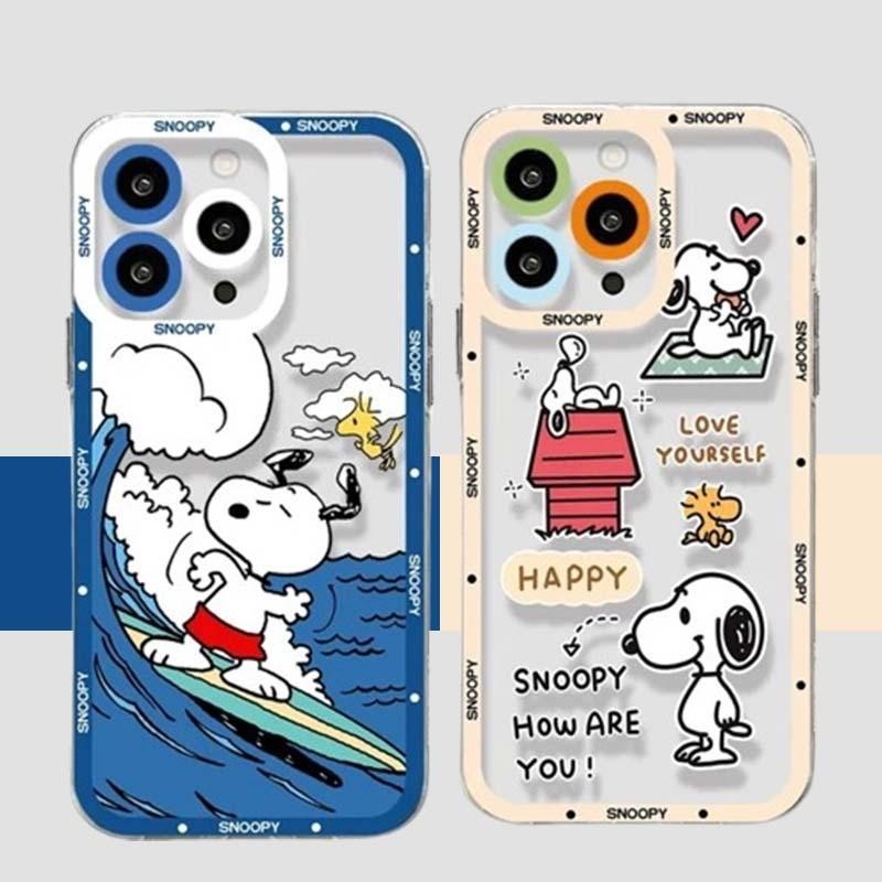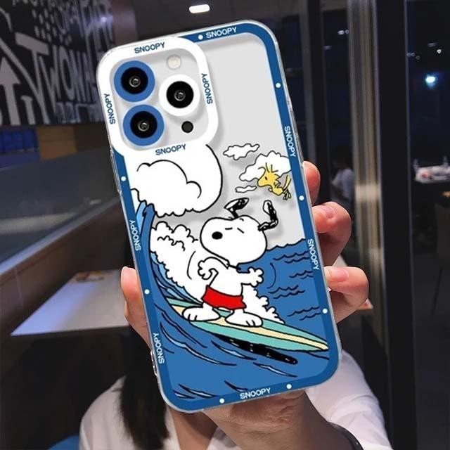 Cute Surfing Snoopy Phone Case For Iphone 15 Pro Max 12 14 11 13 Mini X XS XR 6s 6 7 8 Plus Cover Anime Cartoon Soft Clear Bumper Silicone